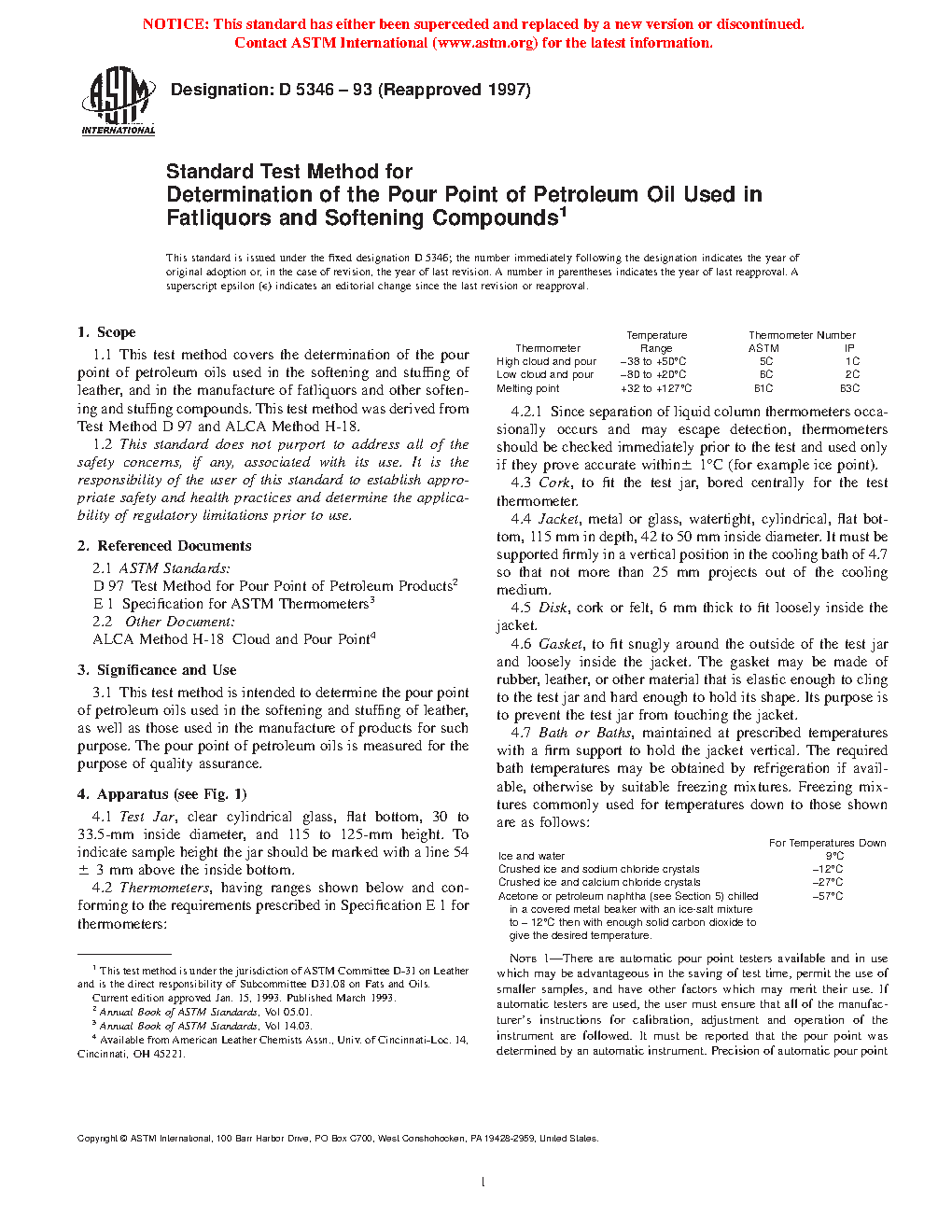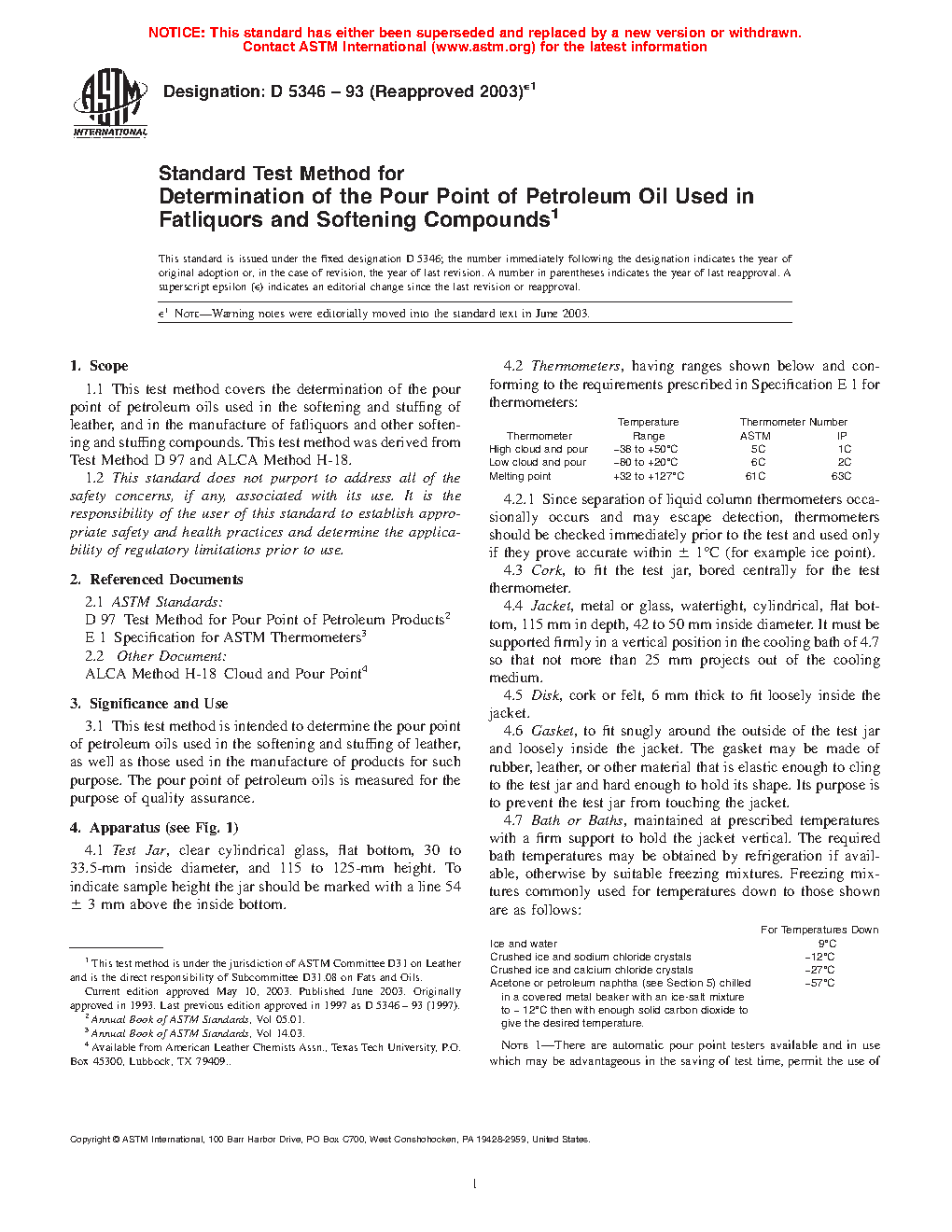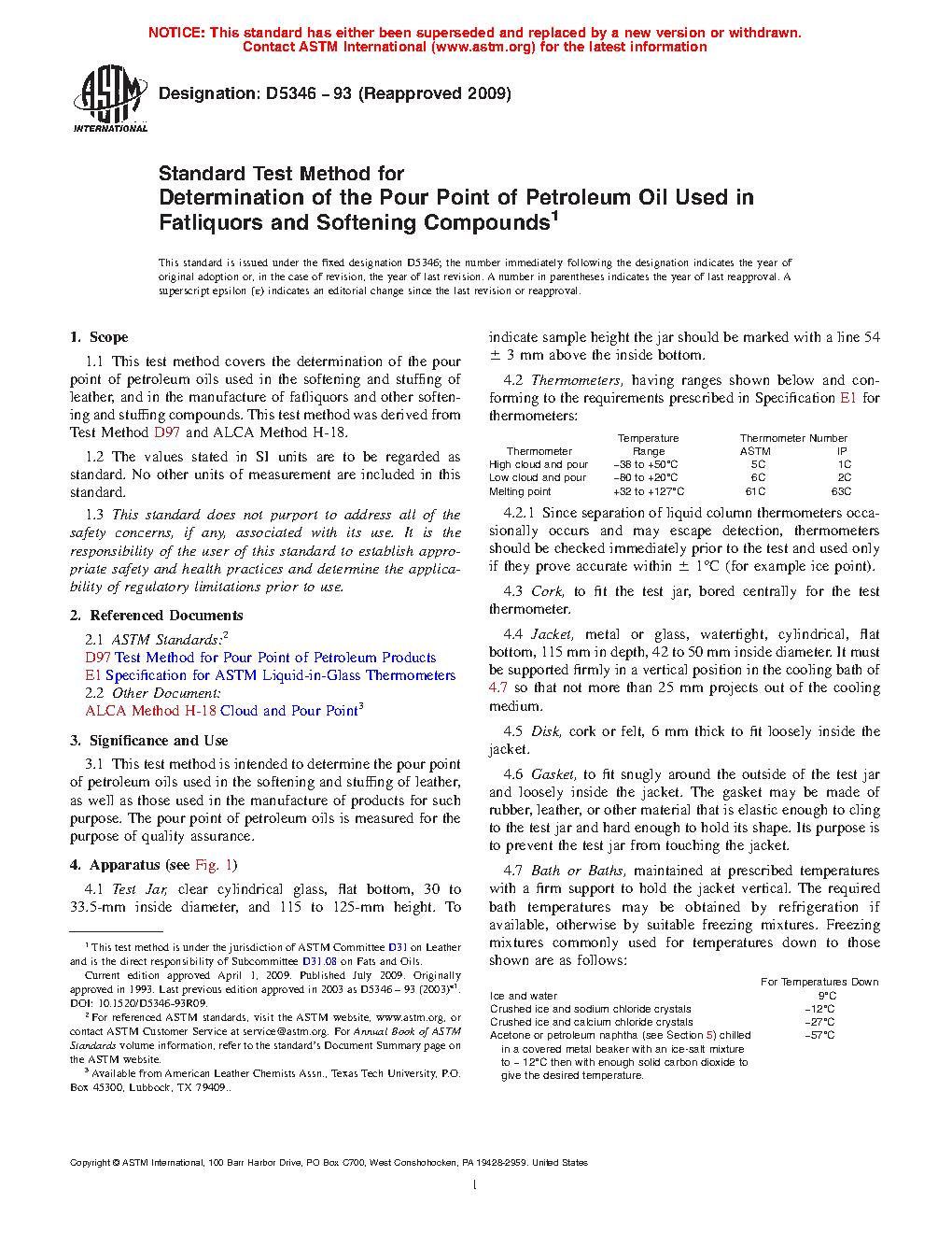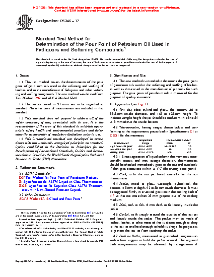Standard Test Method for Determination of the Pour Point of Petroleum Oil Used in Fatliquors and Softening Compounds