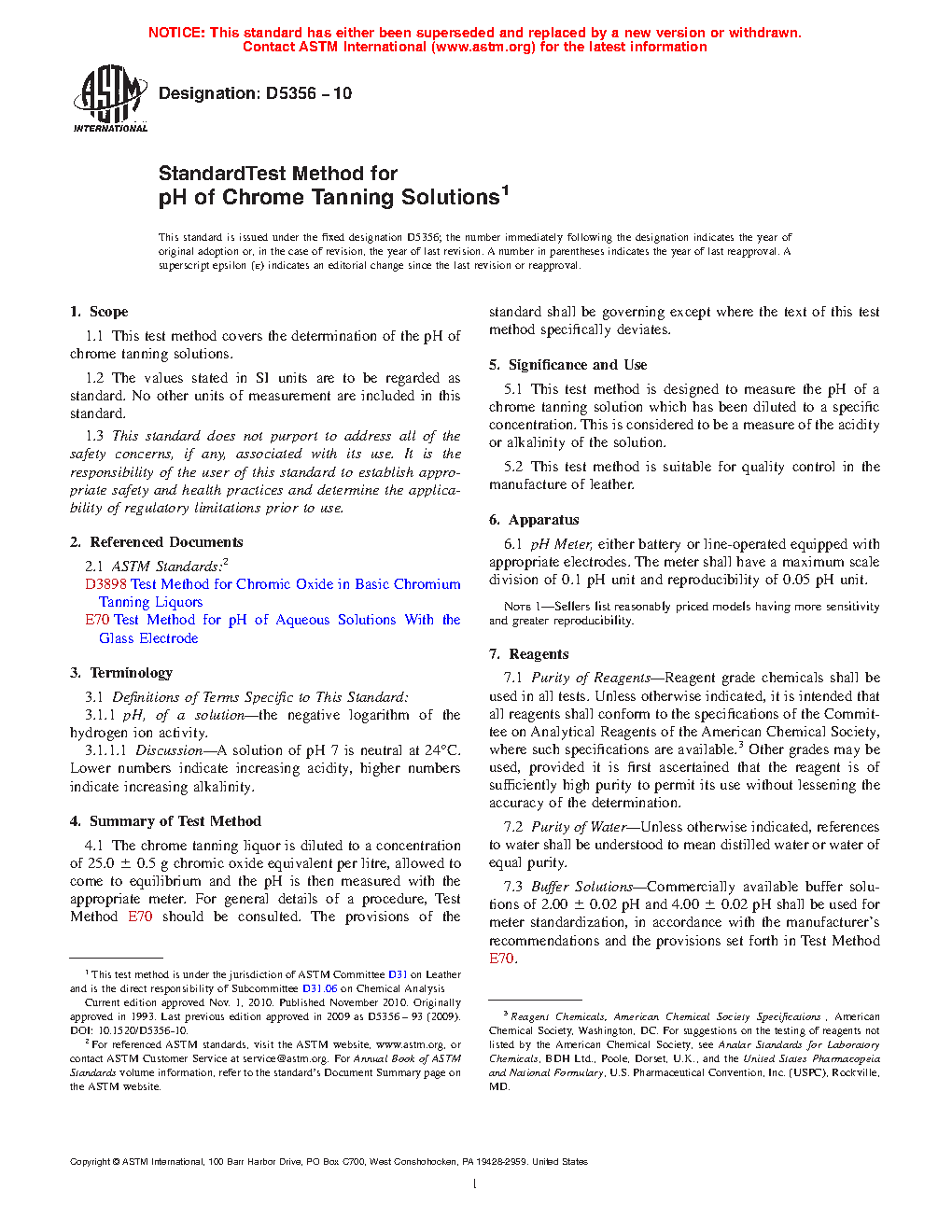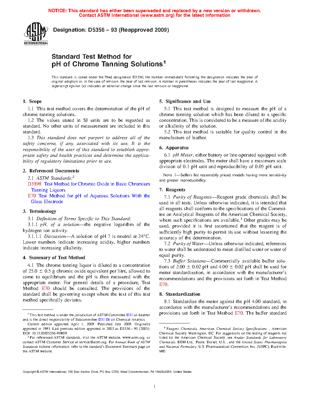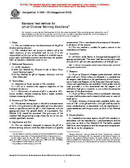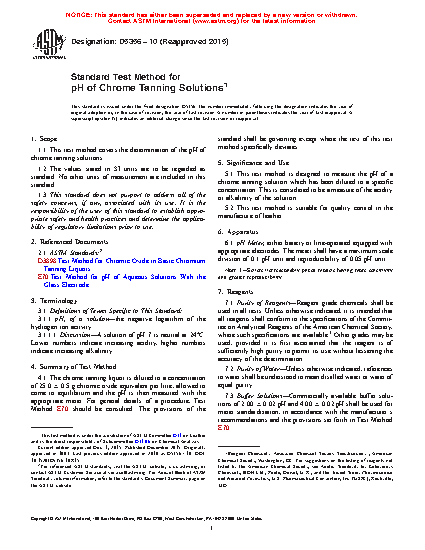1.1 This test method covers the determination of the pH of chrome tanning solutions.