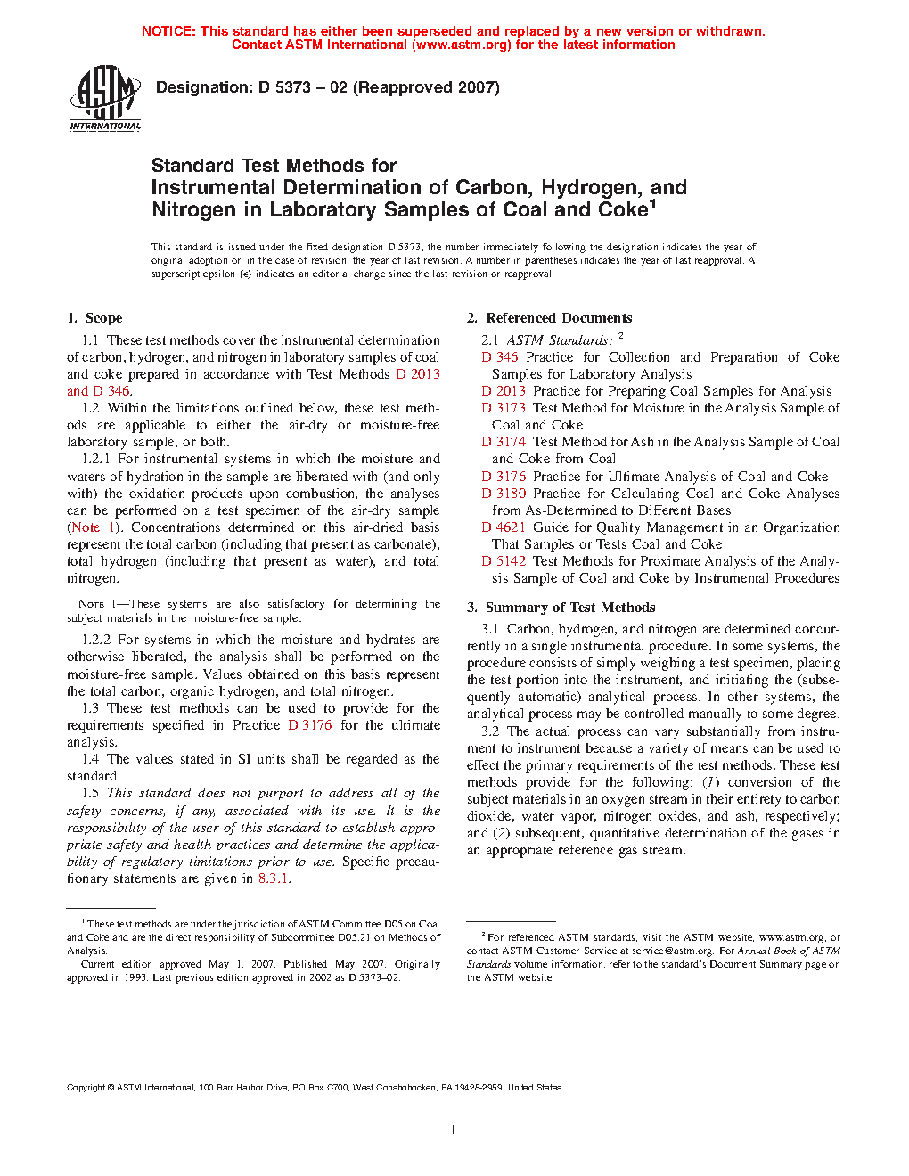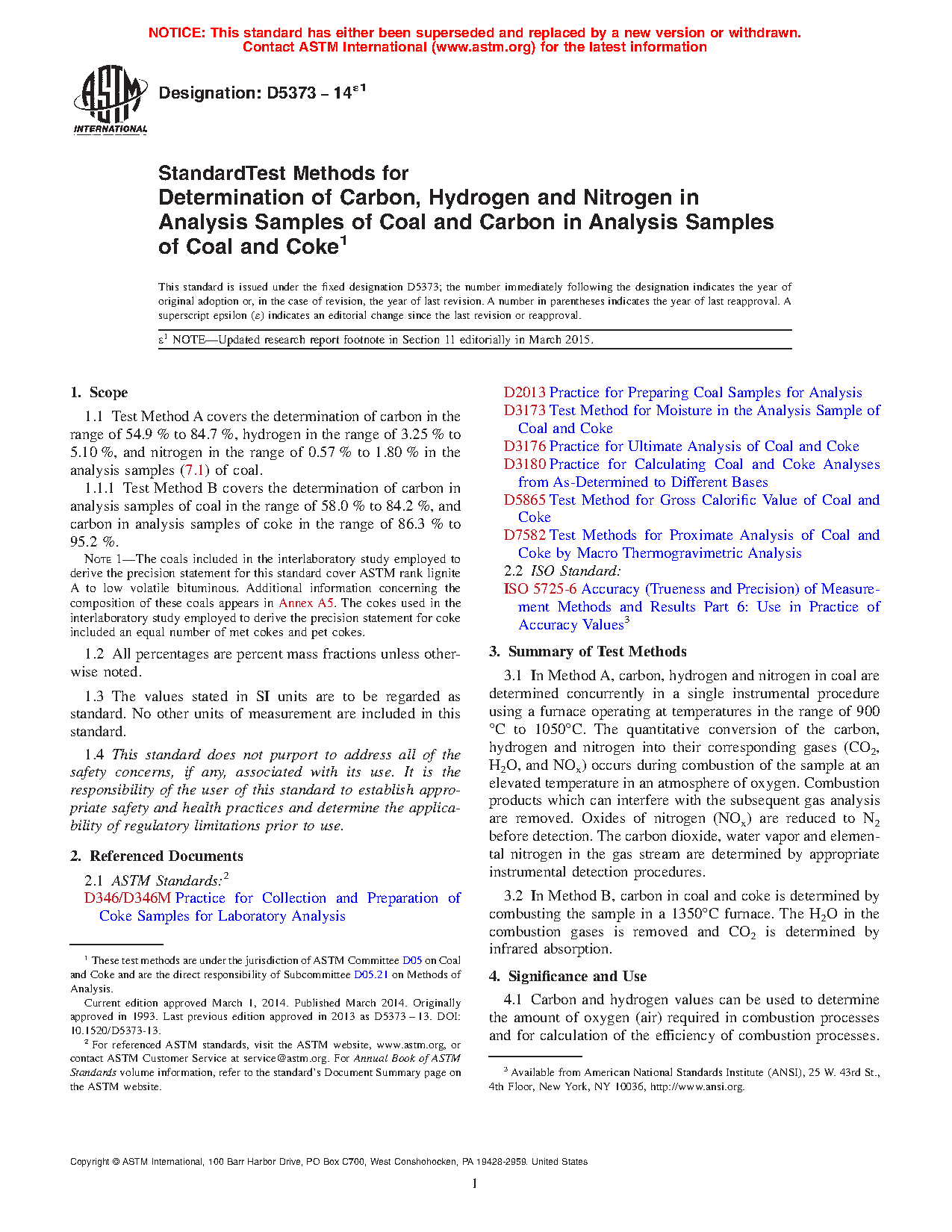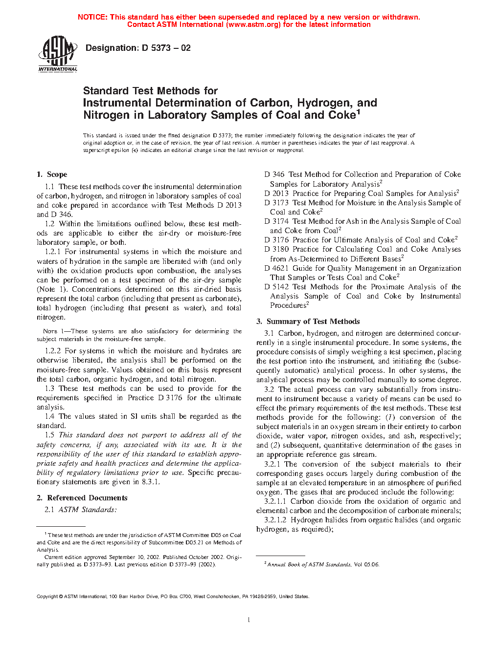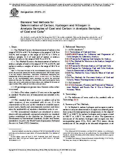 1.1 These test methods cover the instrumental determination of carbon, hydrogen, and nitrogen in laboratory samples of coal and coke prepared in accordance with Test Methods