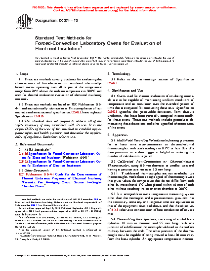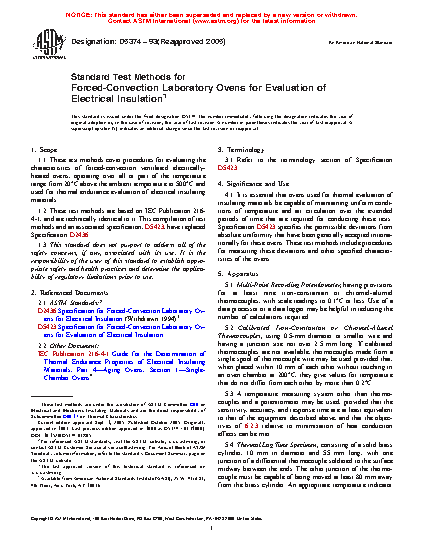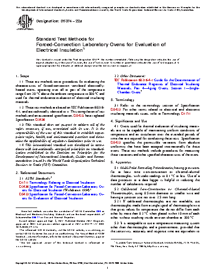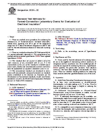 1.1 These test methods cover procedures for evaluating the characteristics of forced-convection ventilated electrically-heated ovens, operating over all or part of the temperature range from 20°C above the ambient temperature to 500°C and used for thermal endurance evaluation of electrical insulating materials.