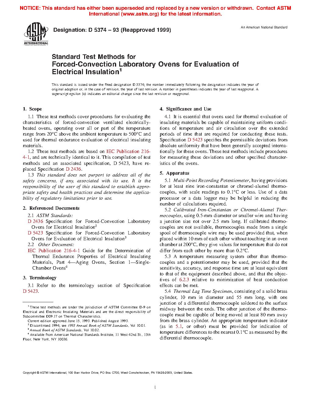 1.2 These test methods are based on IEC Publication 216-4-1, and are technically identical to it. This compilation of test methods and an associated specification, D5423, have replaced Specification D2436.
