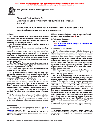 5.2 These test methods can be used to determine when a used petroleum product meets or exceeds requirements for total halogens measured as chloride. It is specifically designed for used oils, permitting on-site testing at remote locations by nontechnical personnel to avoid the delays of laboratory testing.