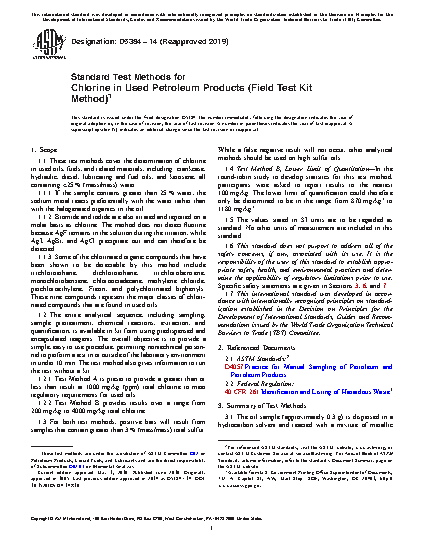 1.1 These test methods cover the determination of chlorine in used oils, fuels, and related materials, including: crankcase, hydraulic, diesel, lubricating and fuel oils, and kerosene, all containing <25 % (mass/mass) water.