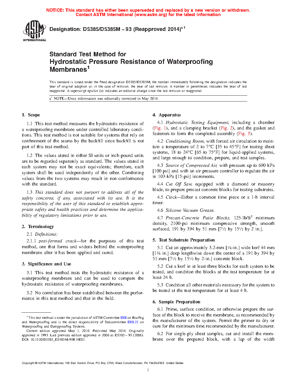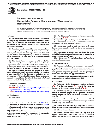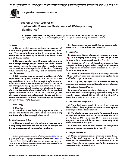 4.1 This test method tests the hydrostatic resistance of a waterproofing membrane and can be used to compare the hydrostatic resistance of waterproofing membranes. It includes two specimen preparation procedures, one for post-applied membranes and one for pre-applied membranes.