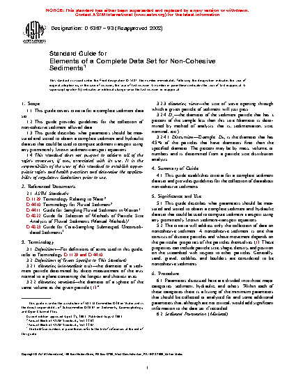 1.2 This guide provides guidelines for the collection of non-cohesive sediment alluvial data.