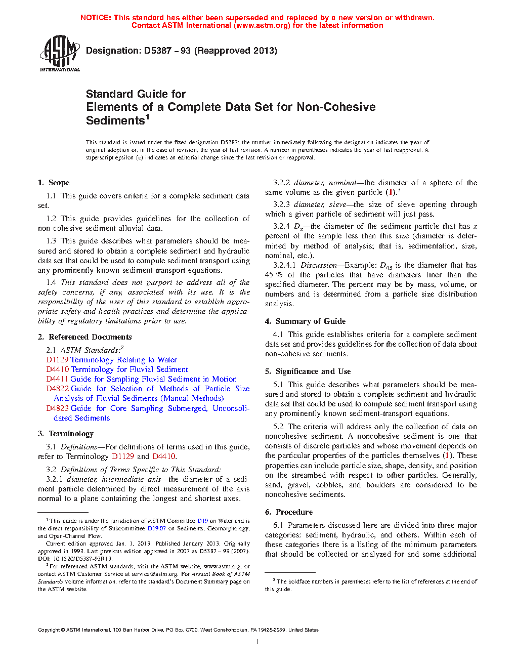 1.3 This guide describes what parameters should be measured and stored to obtain a complete sediment and hydraulic data set that could be used to compute sediment transport using any prominently known sediment-transport equations.