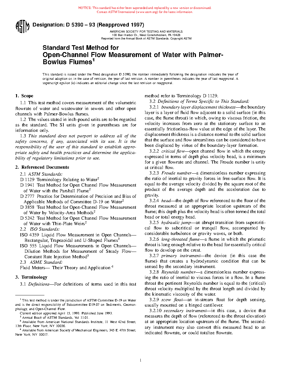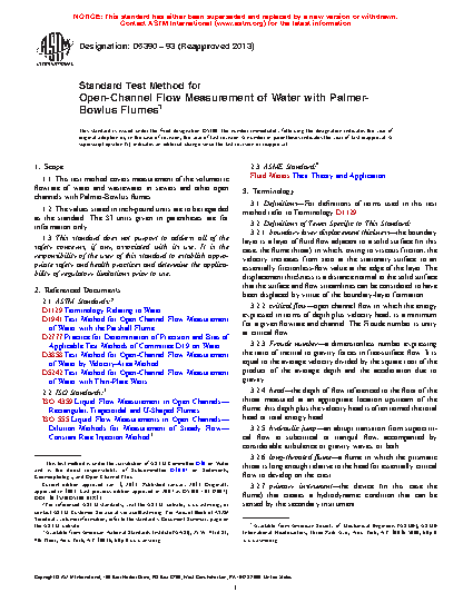1.1 This test method covers measurement of the volumetric flow rate of water and wastewater in sewers and other open channels with Palmer-Bowlus flumes.