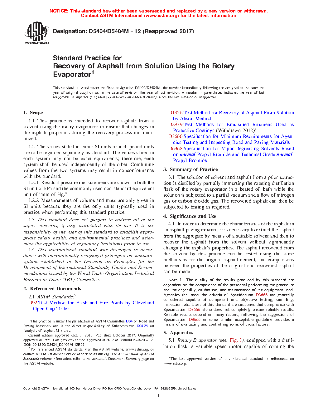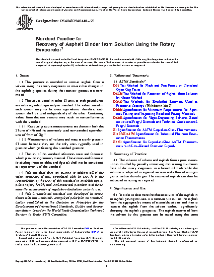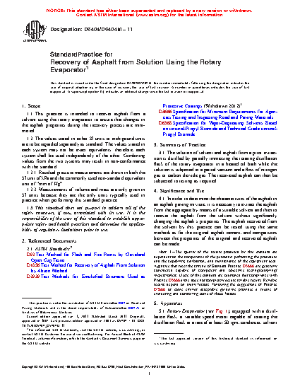 1.1 This practice is intended to recover asphalt from a solvent using the rotary evaporator to ensure that changes in the asphalt properties during the recovery process are minimized.