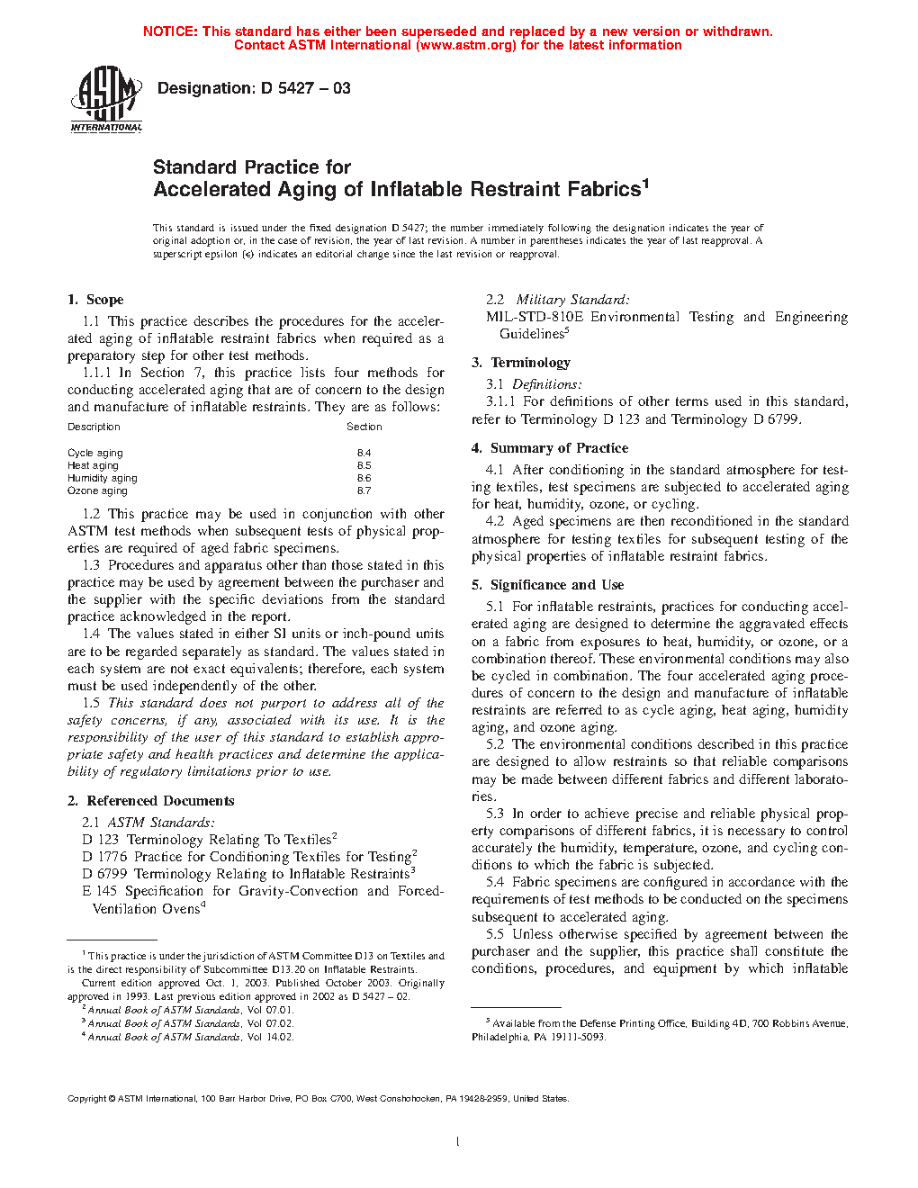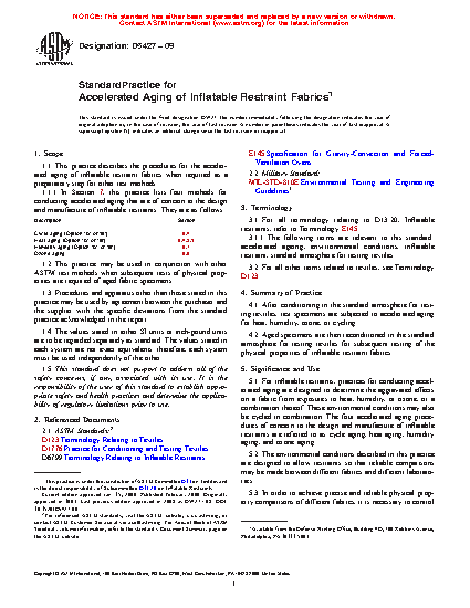 1.1.1 In Section 7, this practice lists four methods for conducting accelerated aging that are of concern to the design and manufacture of inflatable restraints. They are as follows: