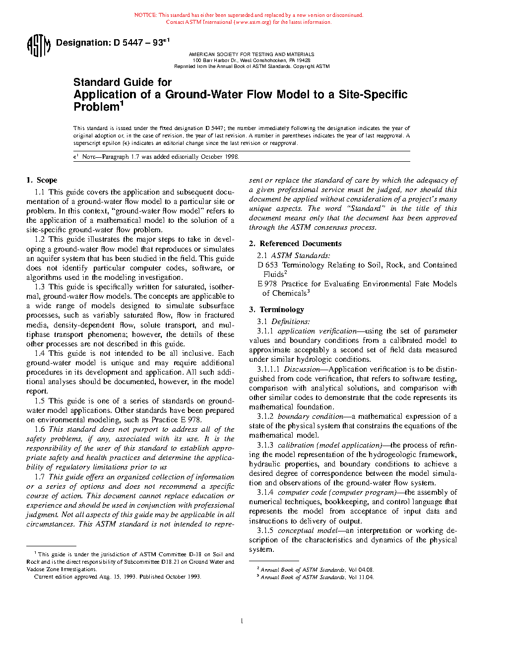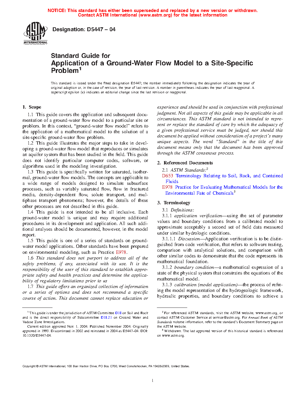 1.5 This guide is one of a series of standards on groundwater model applications. Other standards include D5981, D5490, D5609, D5610, D5611, and D6033.