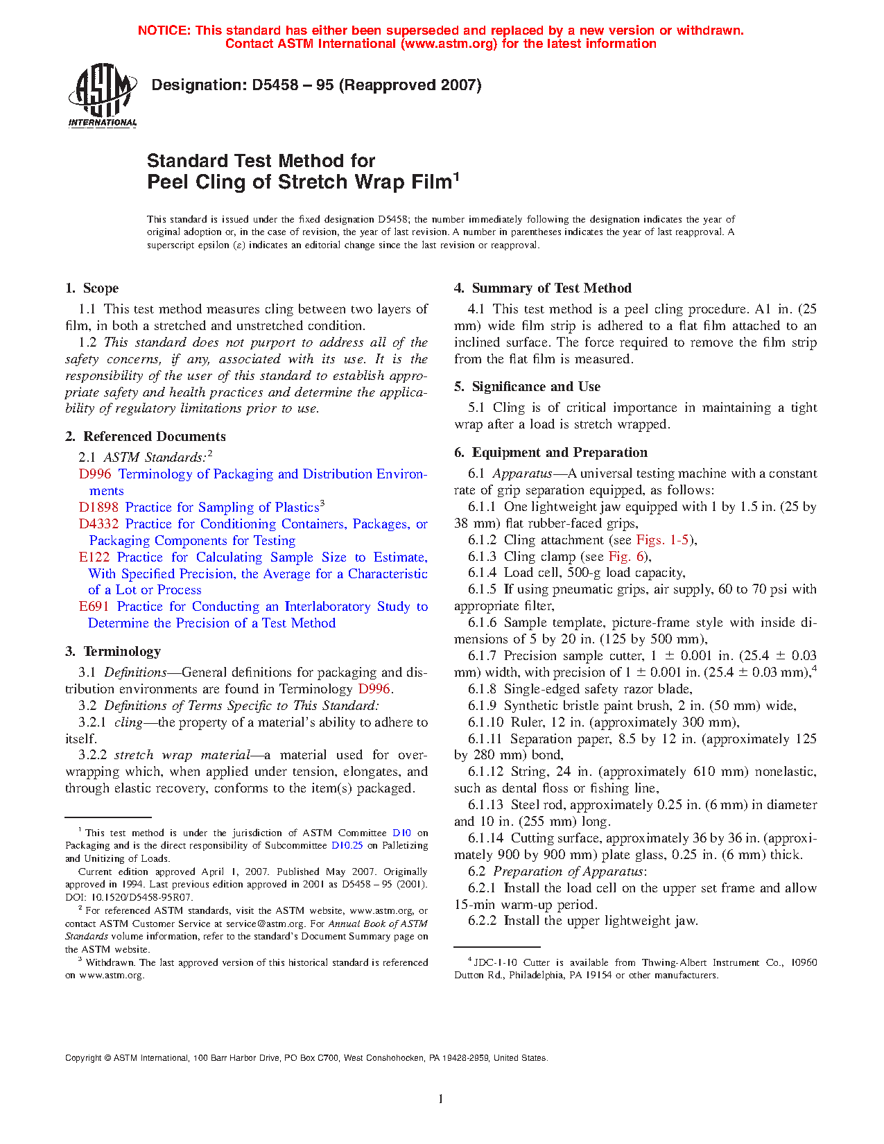 Standard Test Method for Peel Cling of Stretch Wrap Film