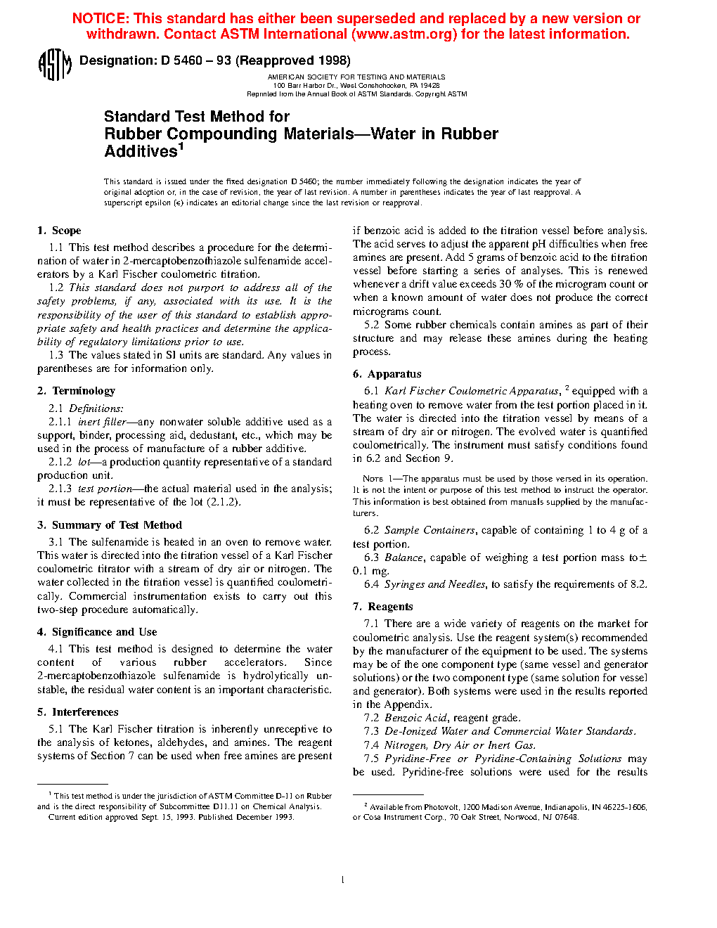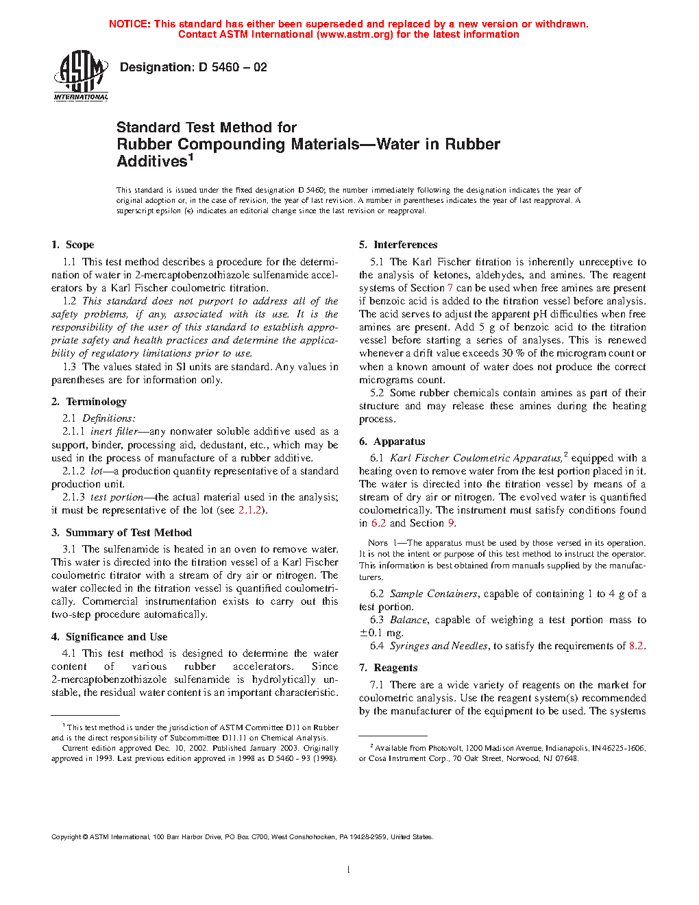 1.1 This test method covers a procedure for the determination of water in 2-mercaptobenzothiazole sulfenamide accelerators by a Karl Fischer coulometric titration.