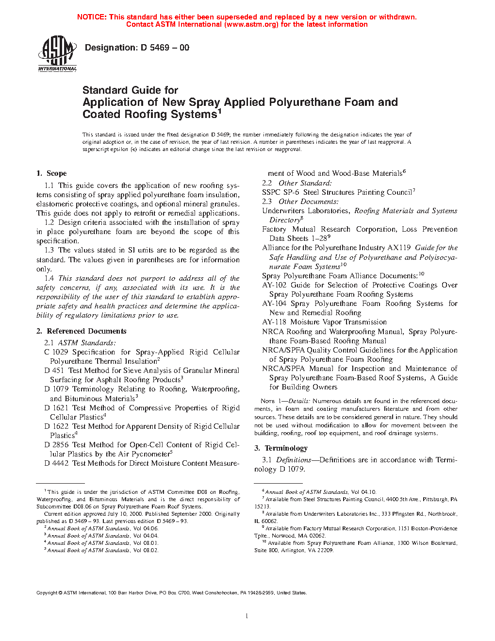 1.1 This guide covers the application of new roofing systems consisting of spray applied polyurethane foam insulation, elastomeric protective coatings, and optional mineral granules. This guide does not apply to retrofit or remedial applications.