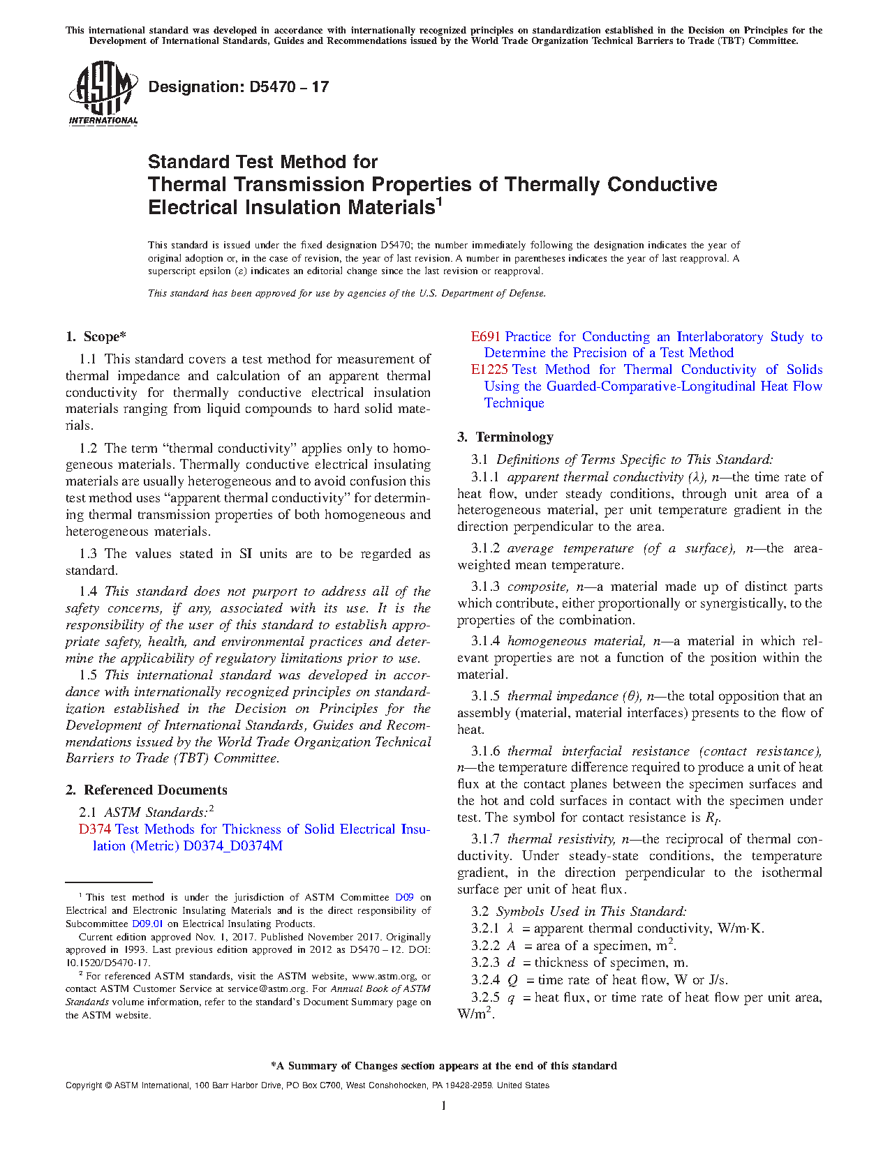 1.2 The term “thermal conductivity” applies only to homogeneous materials. Thermally conductive electrical insulating materials are usually heterogeneous and to avoid confusion this test method uses “apparent thermal conductivity” for determining thermal transmission properties of both homogeneous and heterogeneous materials.