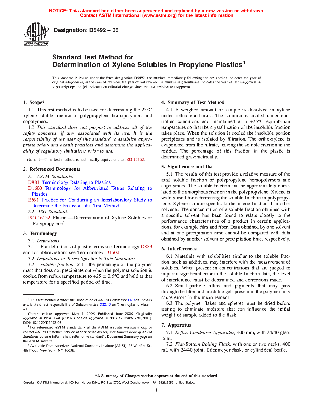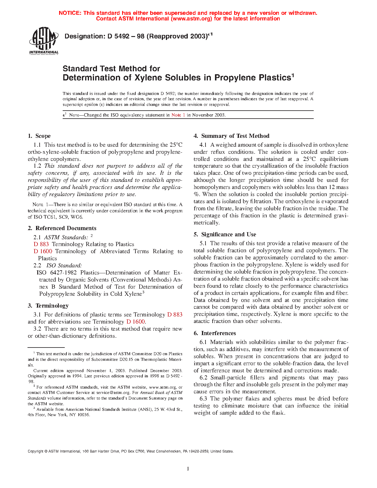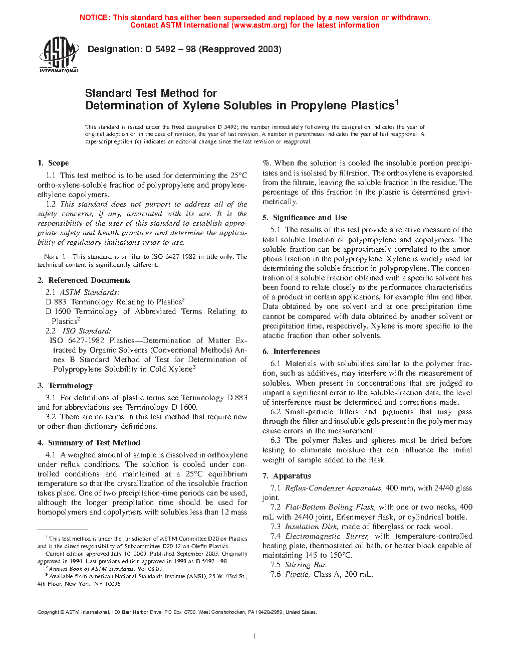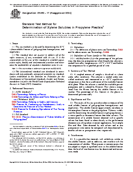 1.1 This test method is to be used for determining the 25°C xylene-soluble fraction of polypropylene homopolymers and copolymers.