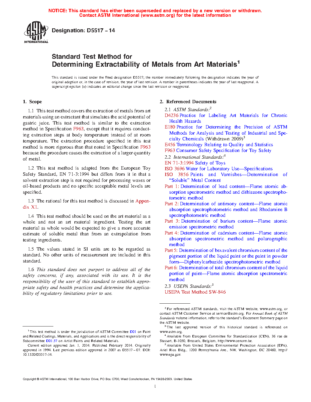 1.4 This test method should be used on the art material as a whole and not an art material ingredient. Testing the art material as whole would be expected to give a more accurate estimate of soluble metal than from an extrapolation from testing ingredients.