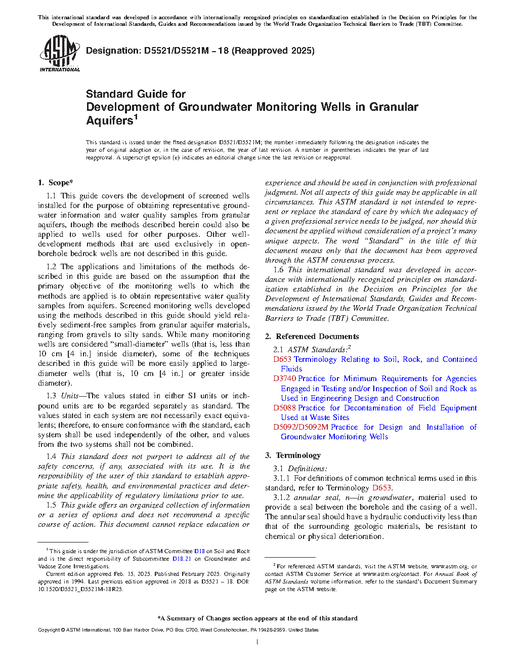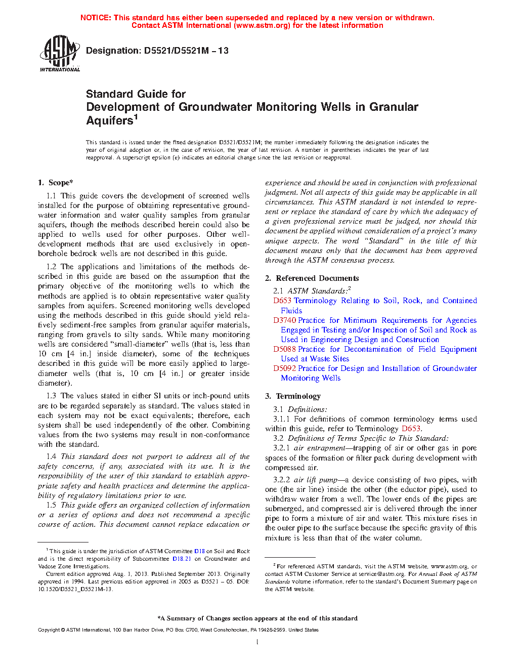 1.1 This guide covers the development of screened wells installed for the purpose of obtaining representative groundwater information and water quality samples from granular aquifers, though the methods described herein could also be applied to wells used for other purposes. Other well-development methods that are used exclusively in open-borehole bedrock wells are not described in this guide.