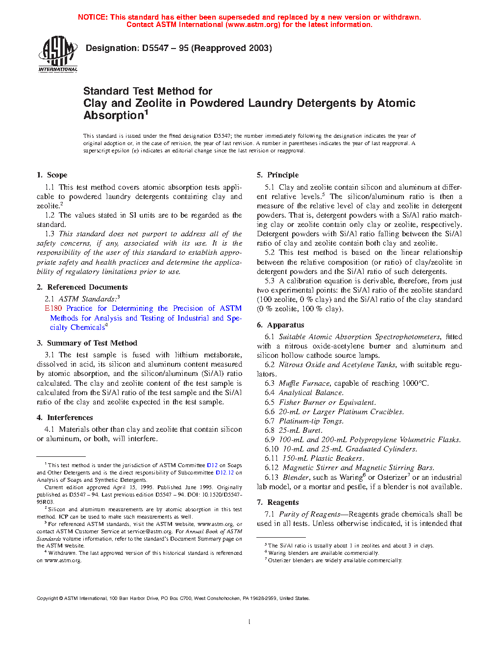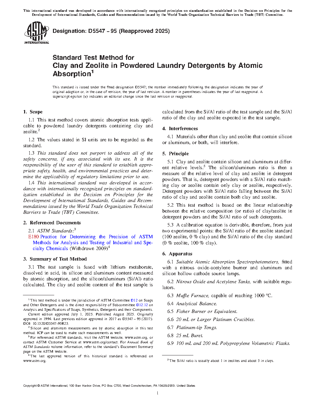 1.1 This test method covers atomic absorption tests applicable to powdered laundry detergents containing clay and zeolite.2