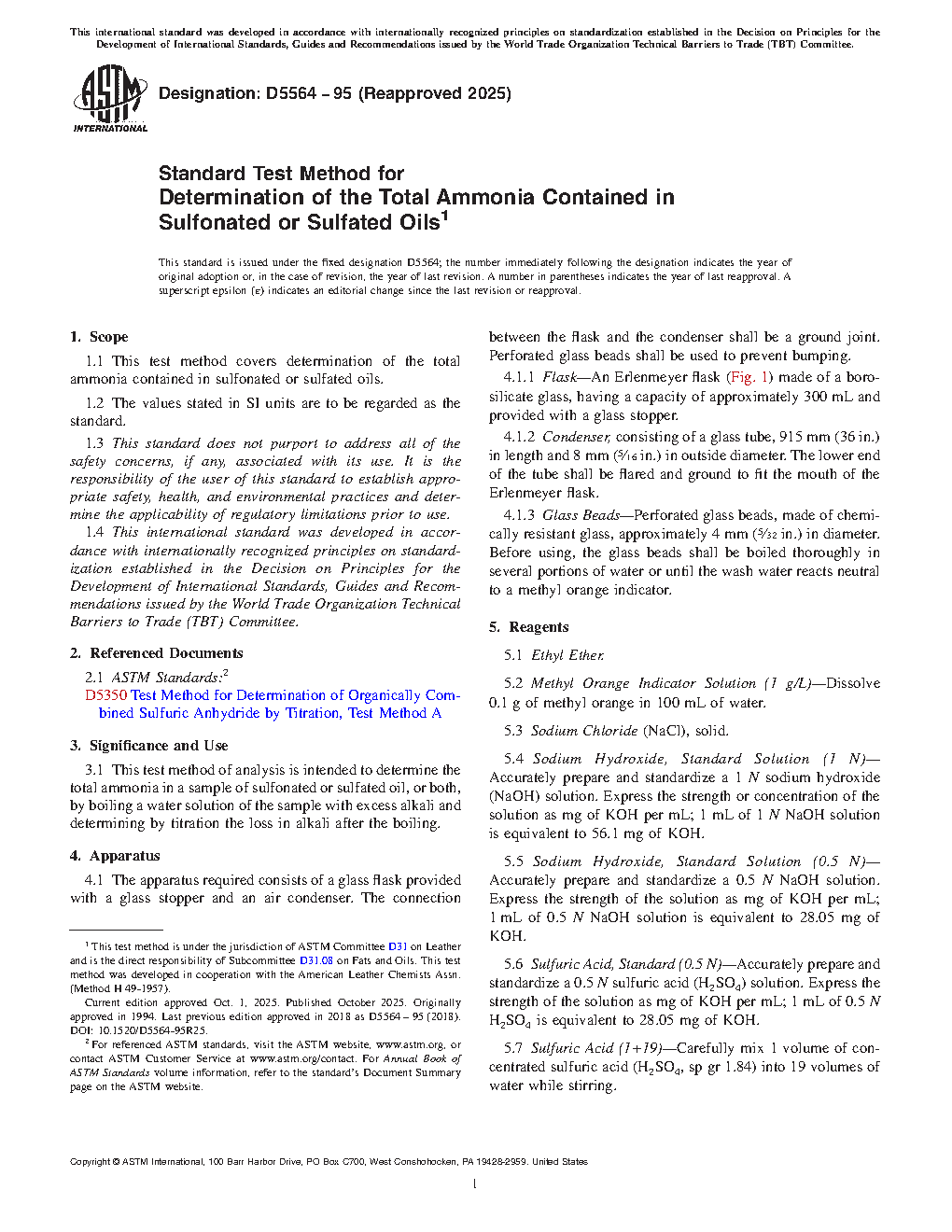 1.1 This test method covers determination of the total ammonia contained in sulfonated or sulfated oils.