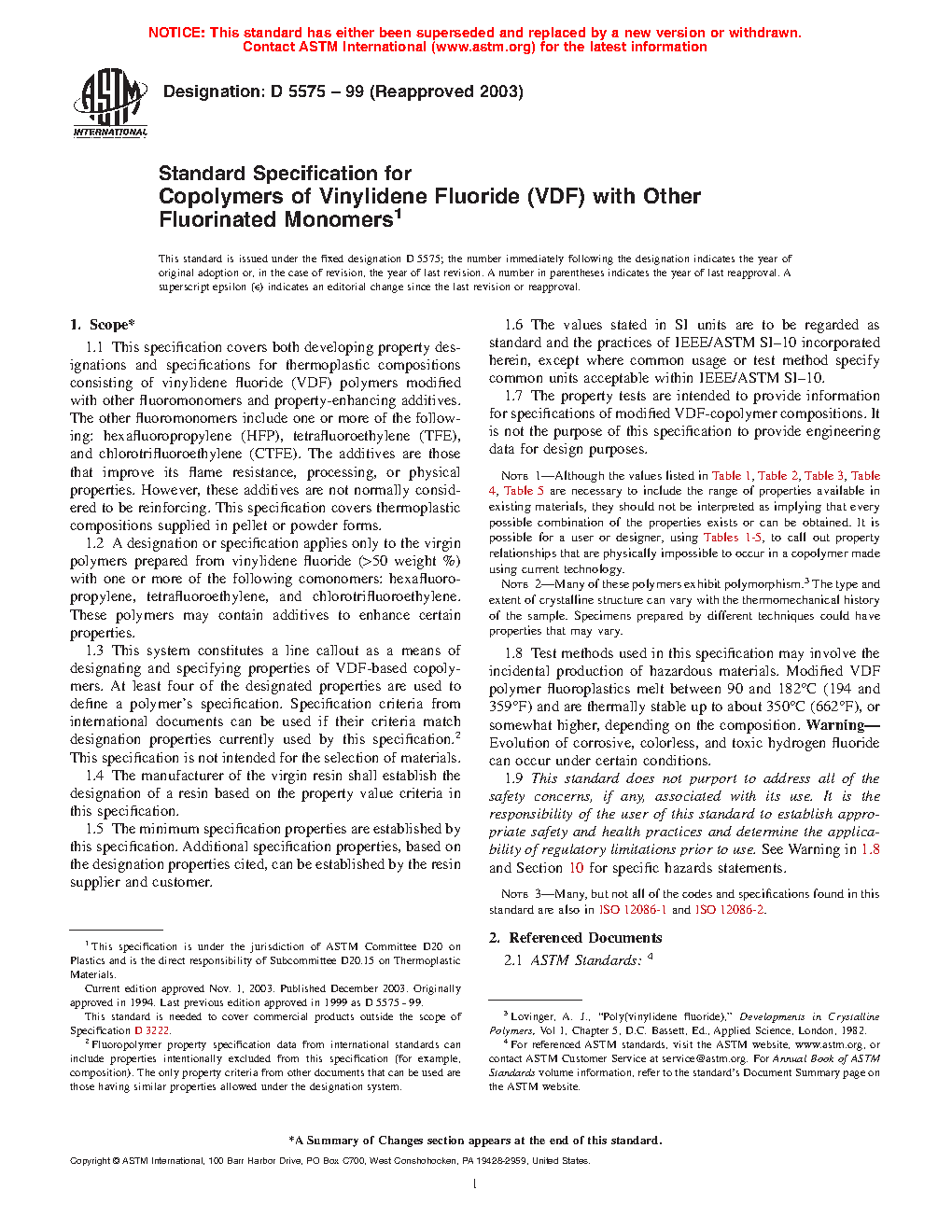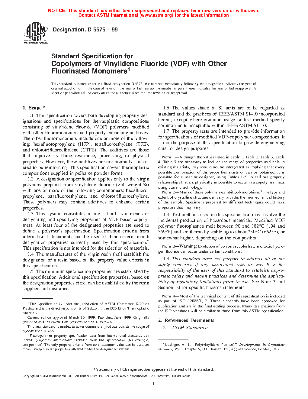 1.2 A designation or specification applies only to the virgin polymers prepared from vinylidene fluoride (>50 weight %) with one or more of the following comonomers: hexafluoropropylene, tetrafluoroethylene, and chlorotrifluoroethylene. Some polymers contain additives to enhance certain properties.