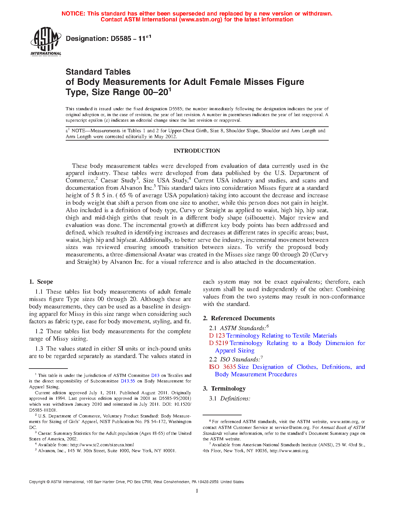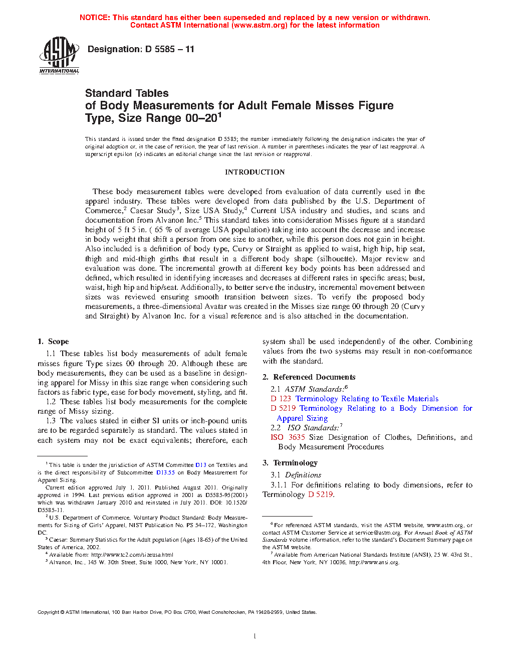 The use of the body measurement information in Table 1 and Table 2 will assist manufacturers in developing patterns and garments that are consistent with the current anthropometric characteristics of the population of interest. This practice should in turn reduce or minimize consumer confusion and dissatisfaction related to apparel sizing. (Also refer to ISO 3635.)