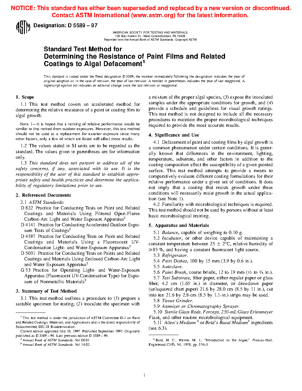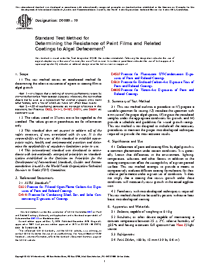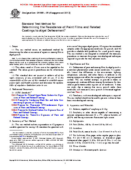 1.1 This test method covers an accelerated method for determining the relative resistance of a paint or coating film to algal growth.