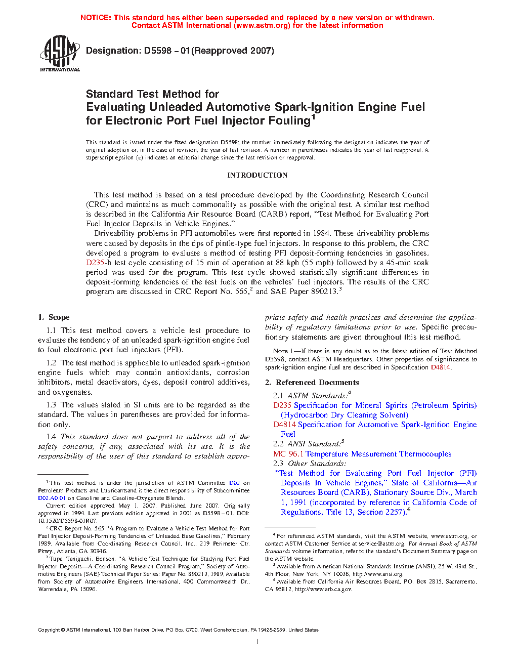 Note 1: If there is any doubt as to the latest edition of Test Method D5598, contact ASTM Headquarters. Other properties of significance to spark-ignition engine fuel are described in Specification D4814.