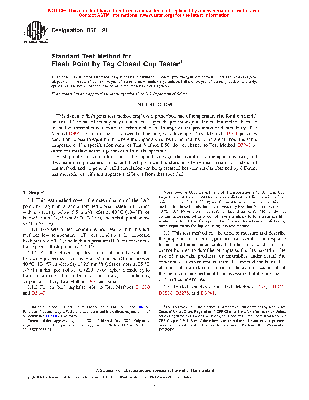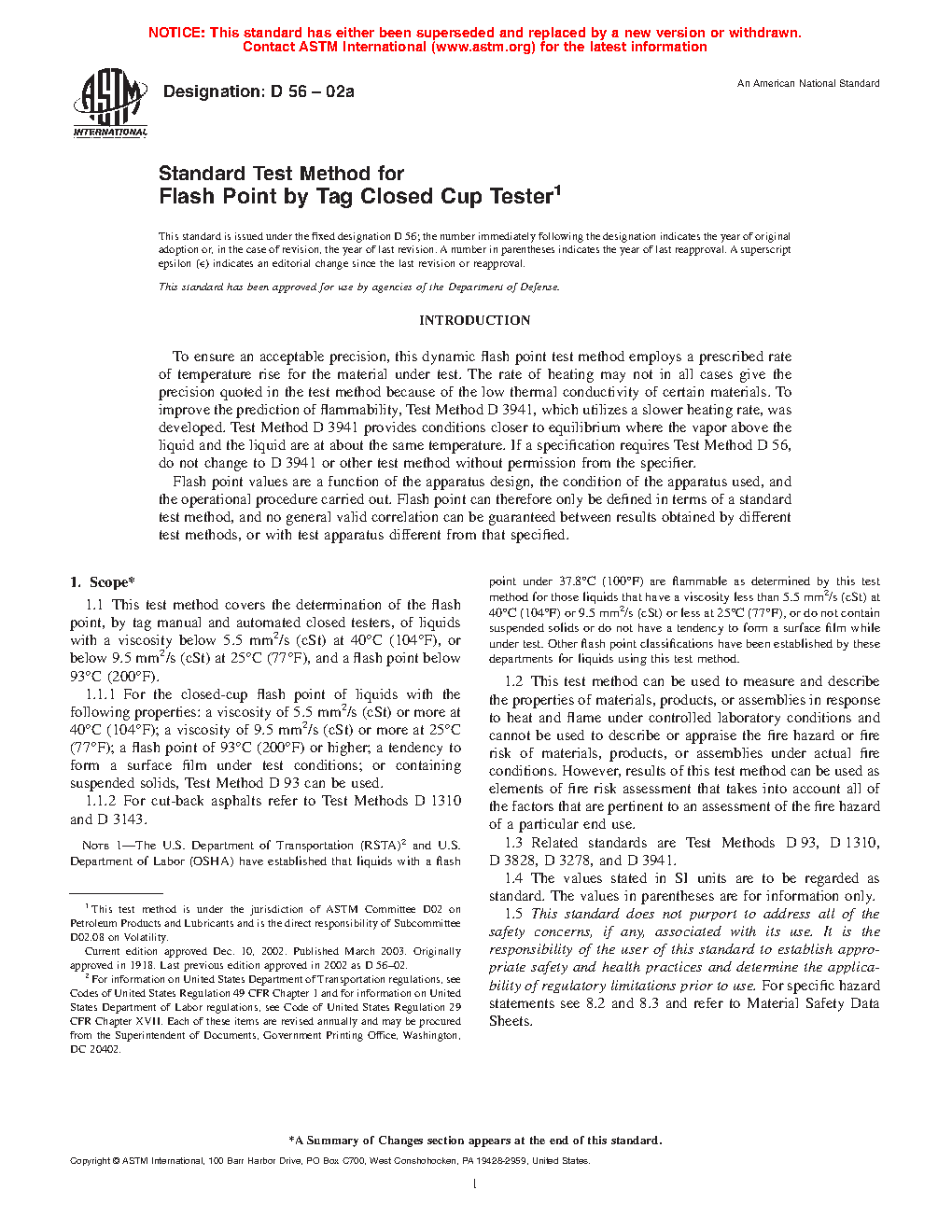Standard Test Method for Flash Point by Tag Closed Tester