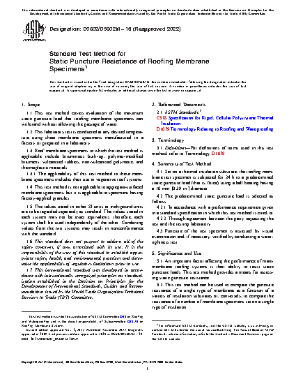 5.6 While it is considered that the results obtained by this laboratory test can afford a measure of the static puncture resistance of membrane roofing systems in the field provided that service loads and temperature conditions are known, no direct correlation has yet been established.