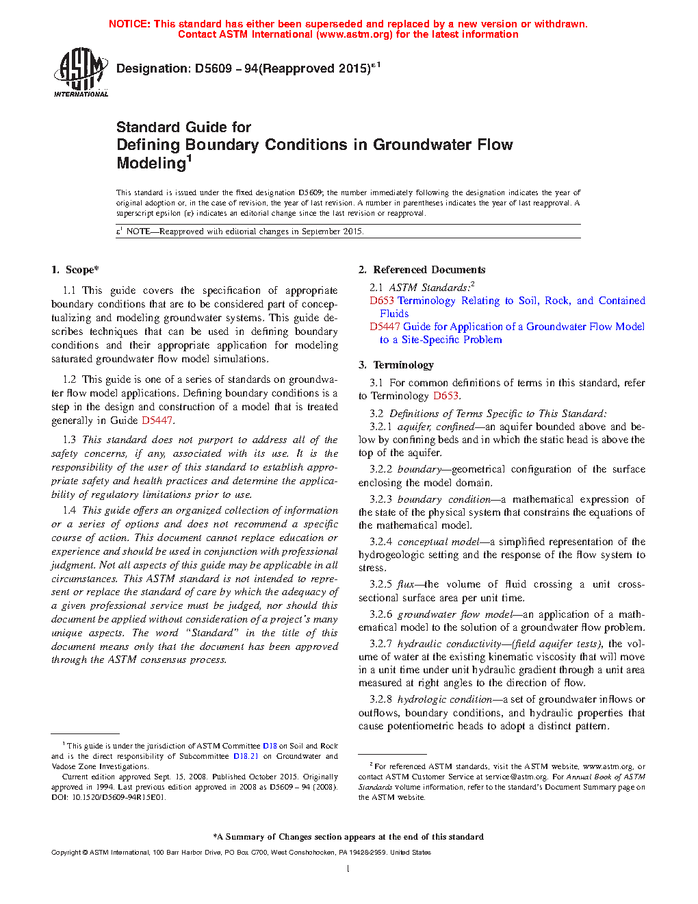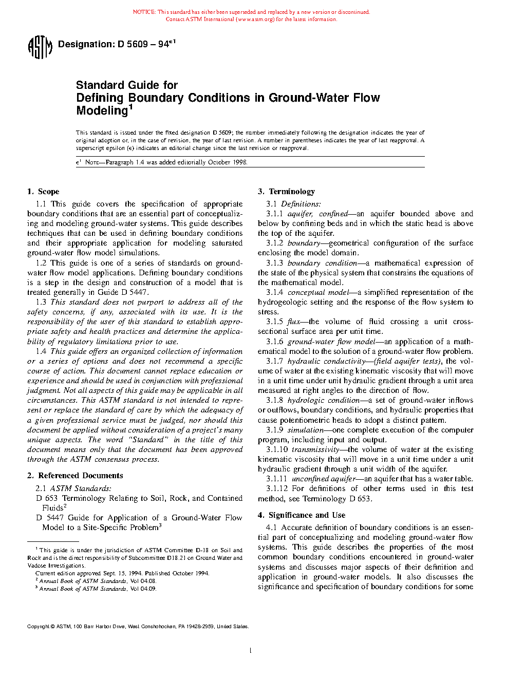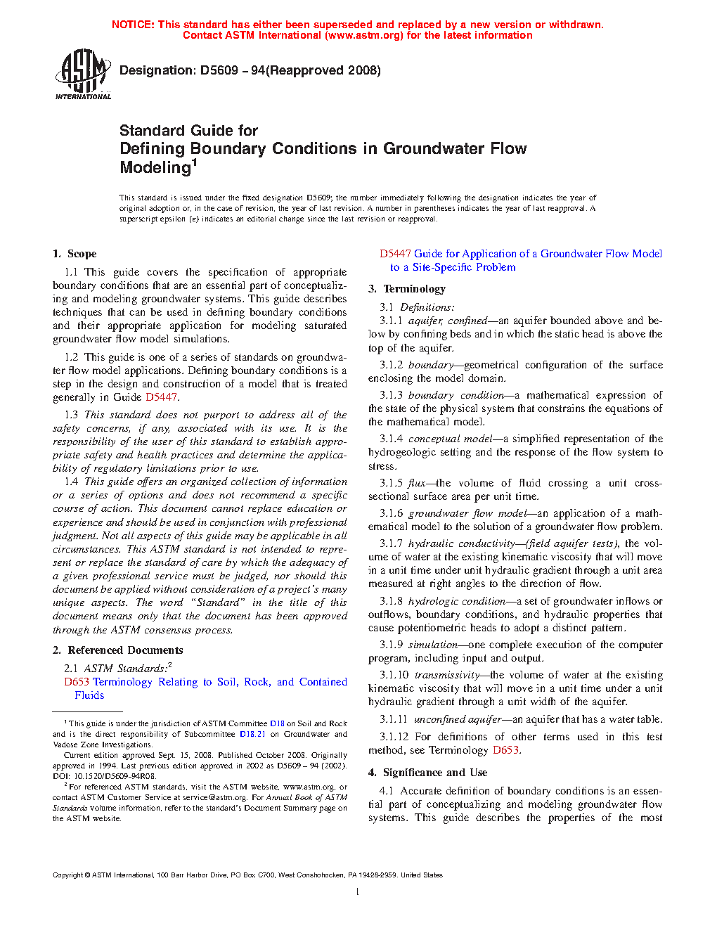 1.1 This guide covers the specification of appropriate boundary conditions that are to be considered part of conceptualizing and modeling groundwater systems. This guide describes techniques that can be used in defining boundary conditions and their appropriate application for modeling saturated groundwater flow model simulations.