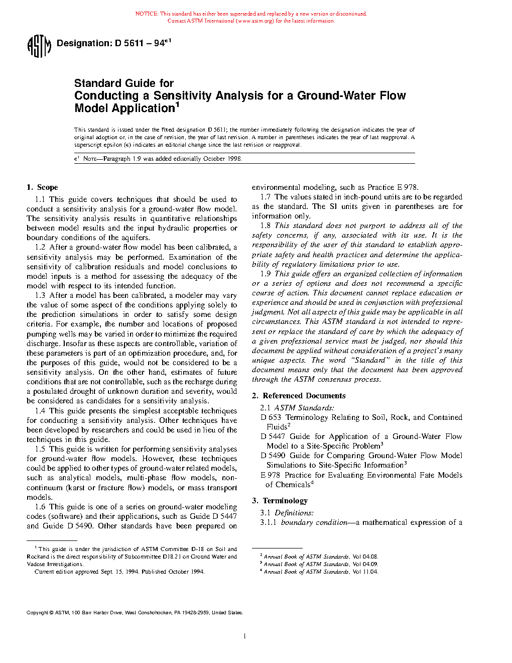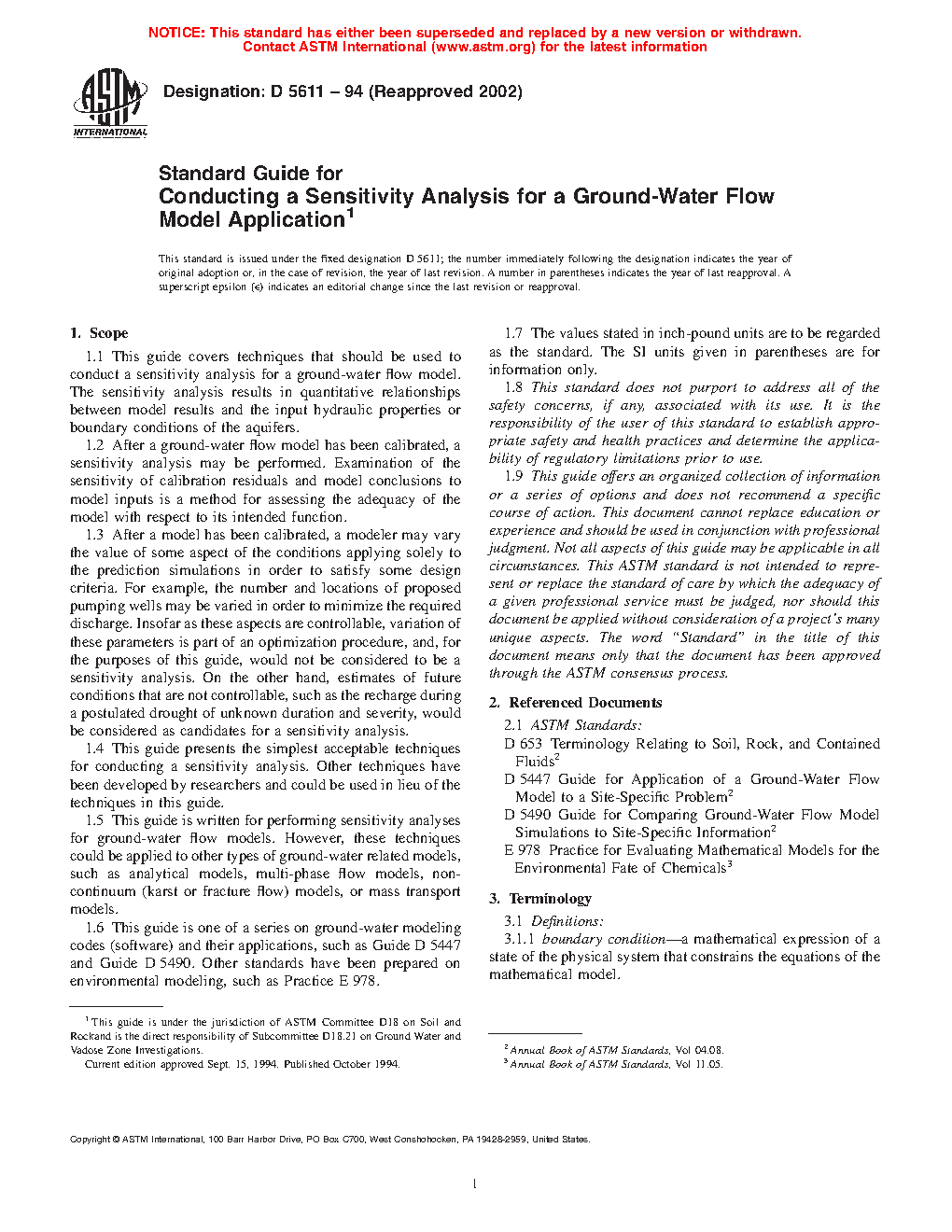 1.5 This guide is written for performing sensitivity analyses for groundwater flow models. However, these techniques could be applied to other types of groundwater related models, such as analytical models, multi-phase flow models, non-continuum (karst or fracture flow) models, or mass transport models.