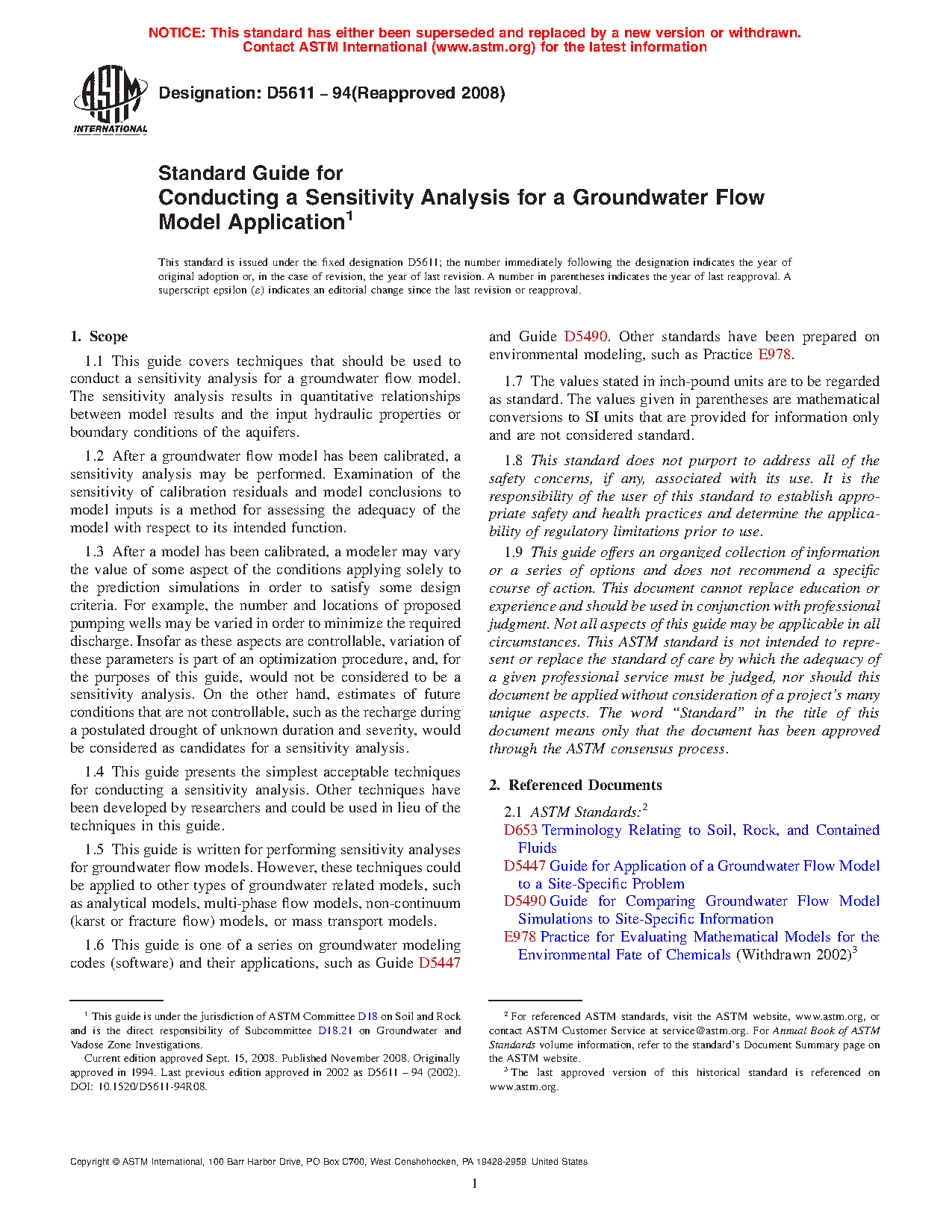 1.6 This guide is one of a series on groundwater modeling codes (software) and their applications, such as Guide D5447 and Guide D5490. Other standards have been prepared on environmental modeling, such as Practice E978.