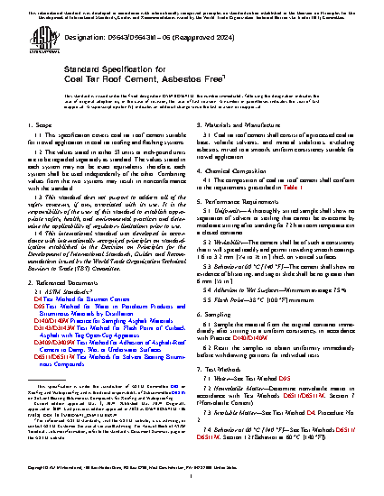 1.1 This specification covers coal tar roof cement suitable for trowel application in coal tar roofing and flashing systems.