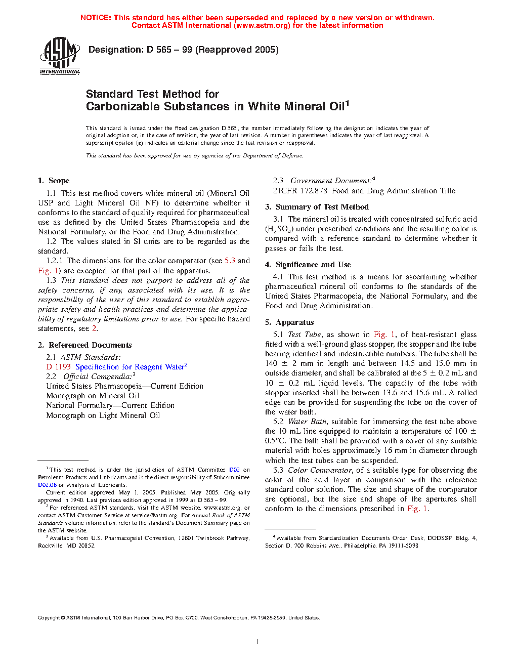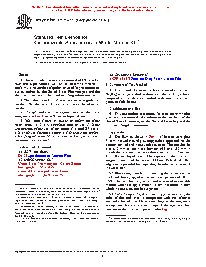 5.1 This test method is a means for ascertaining whether pharmaceutical mineral oil conforms to the standards of the United States Pharmacopeia, the National Formulary, and the Food and Drug Administration.