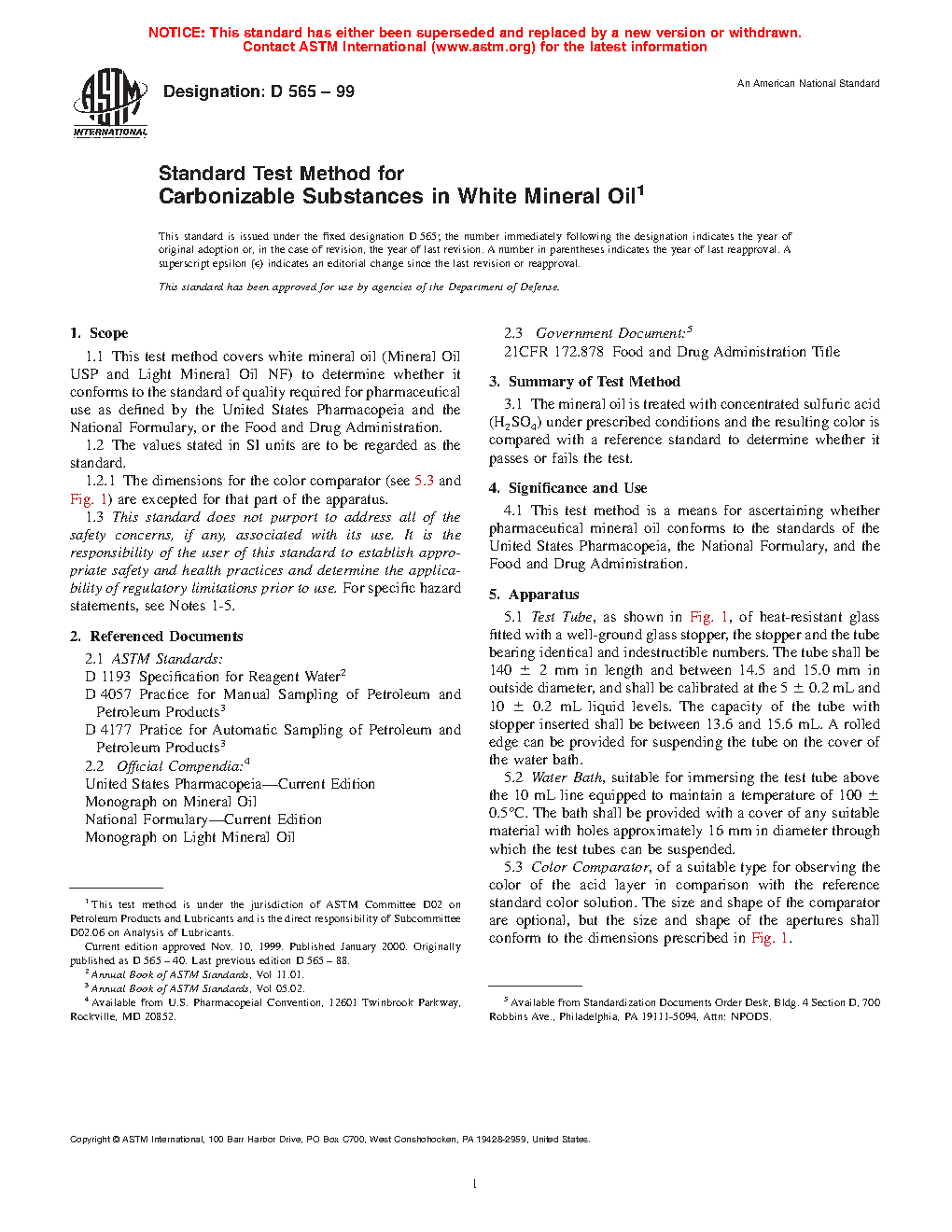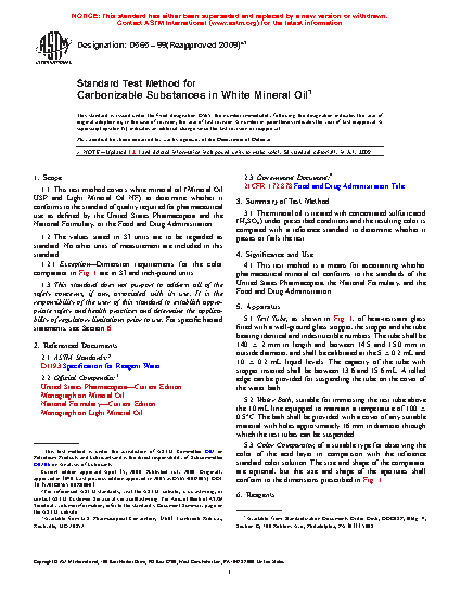 1.1 This test method covers white mineral oil (Mineral Oil USP and Light Mineral Oil NF) to determine whether it conforms to the standard of quality required for pharmaceutical use as defined by the United States Pharmacopeia and the National Formulary, or the Food and Drug Administration.