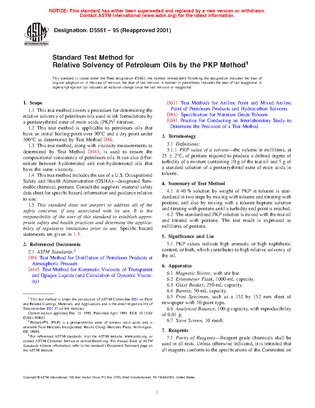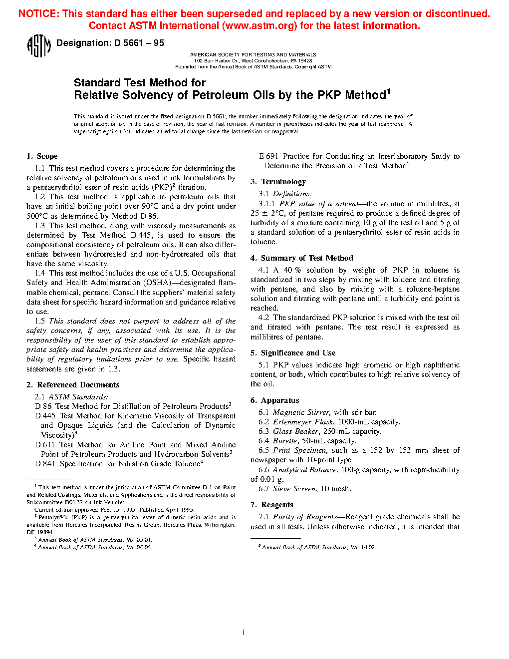 1.1 This test method covers a procedure for determining the relative solvency of petroleum oils used in ink formulations by a pentaerythritol ester of resin acids (PKP) titration.