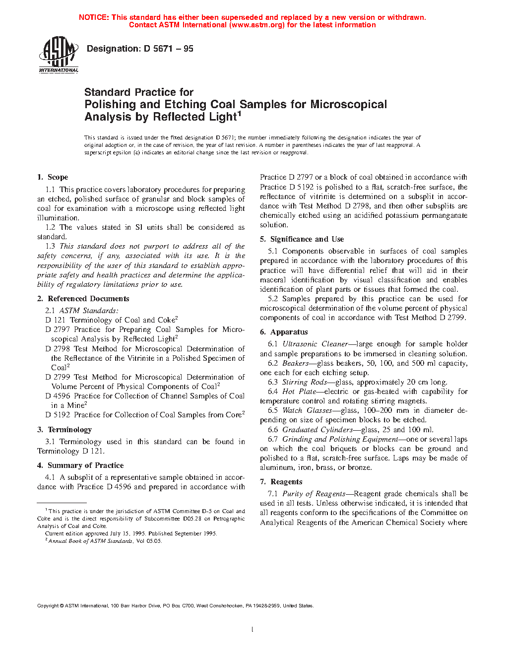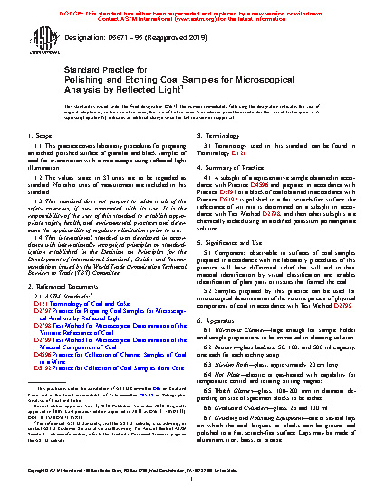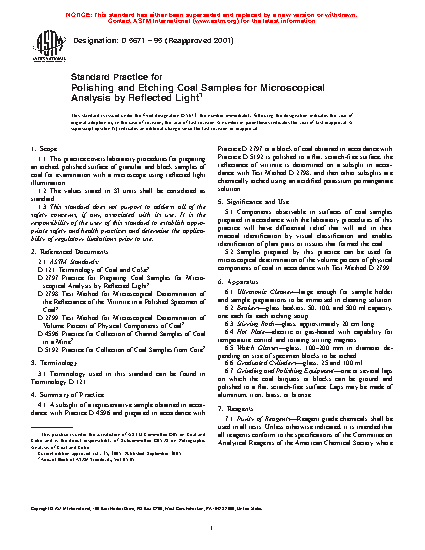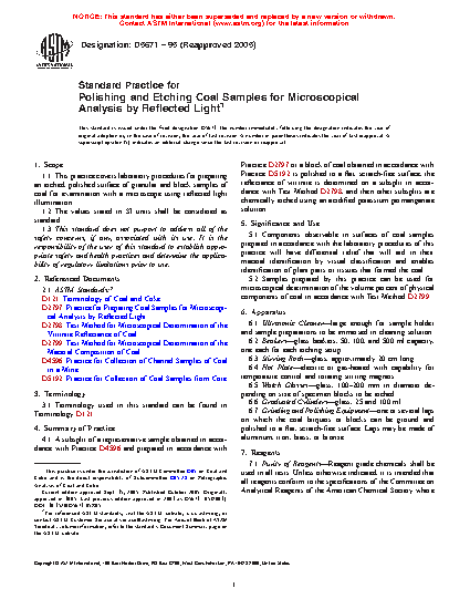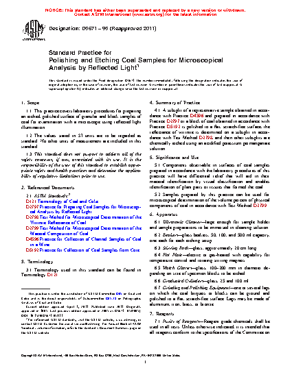 Samples prepared by this practice can be used for microscopical determination of the volume percent of physical components of coal in accordance with Test Method D2799.