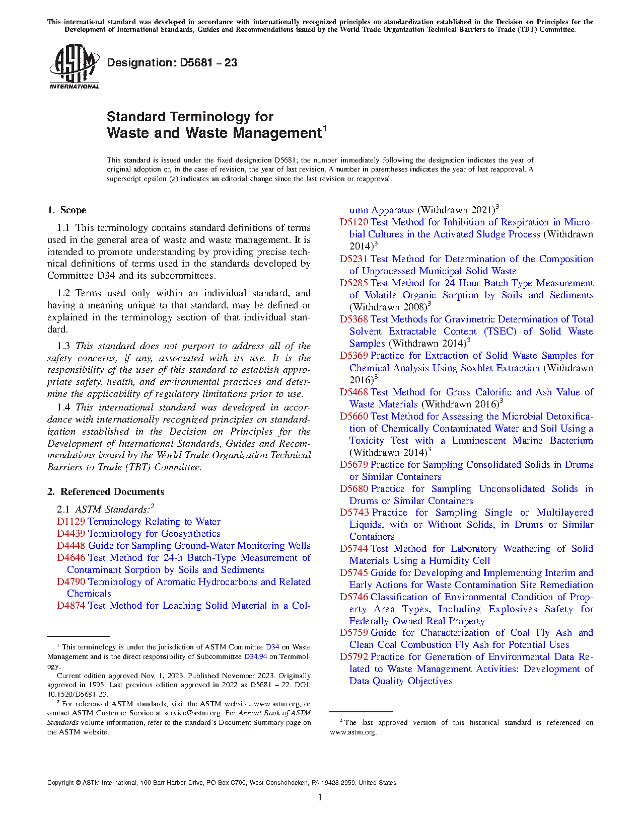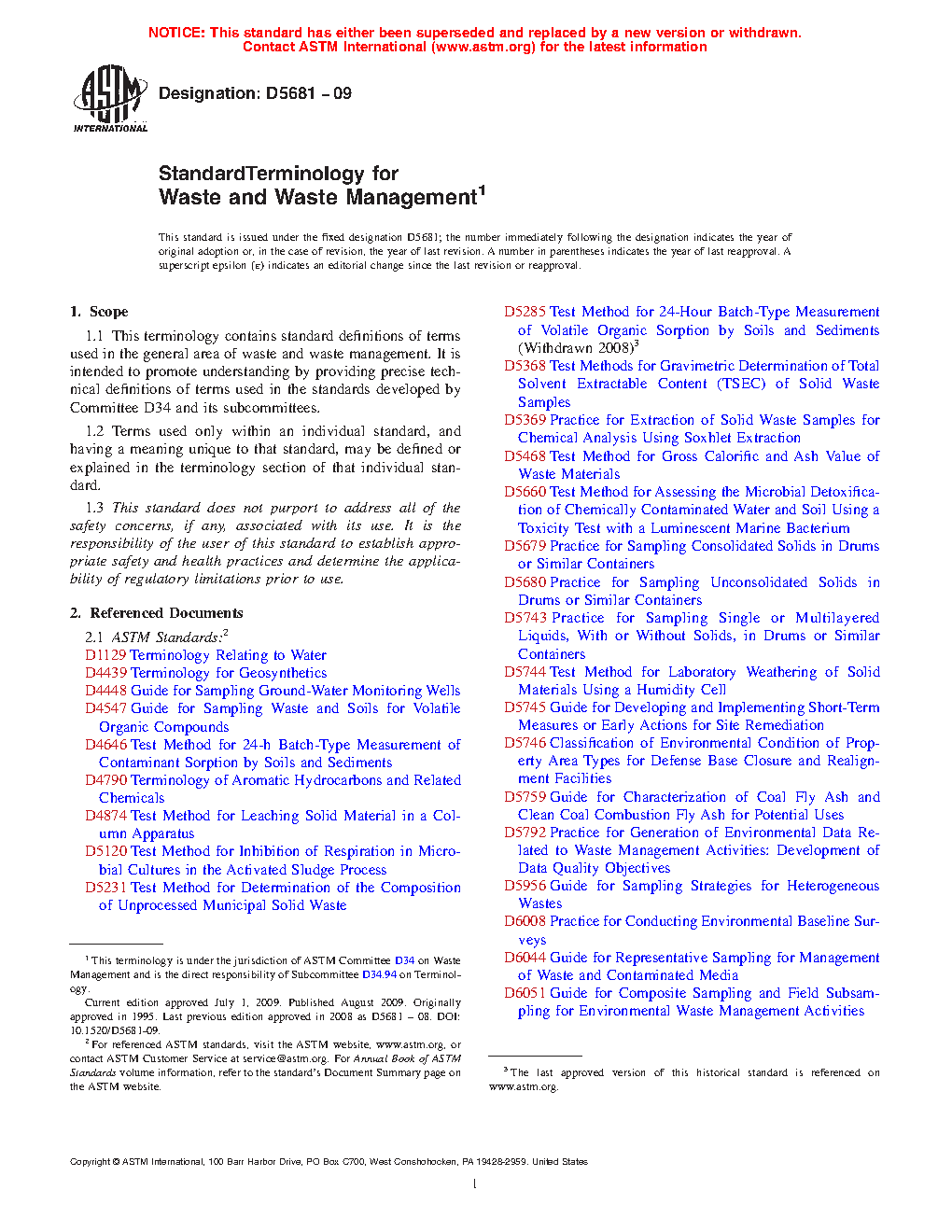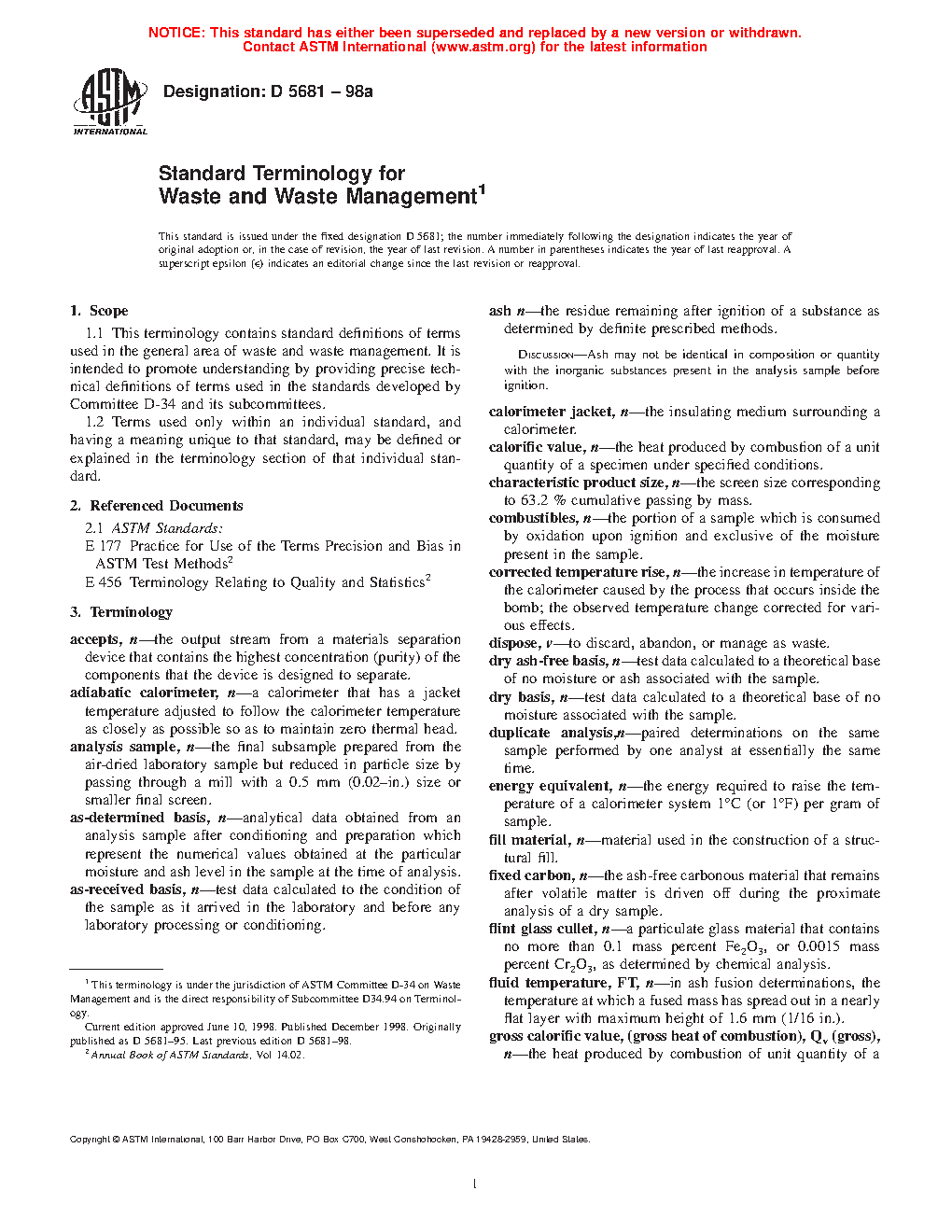 3.2 This terminology is not intended for subjects other than waste and waste management. For terms applicable to other subject areas, the appropriate terminology standard(s) should be consulted. See the current edition of the Compilation of ASTM Standard Definitions4 and the list of terminology standards cited therein.