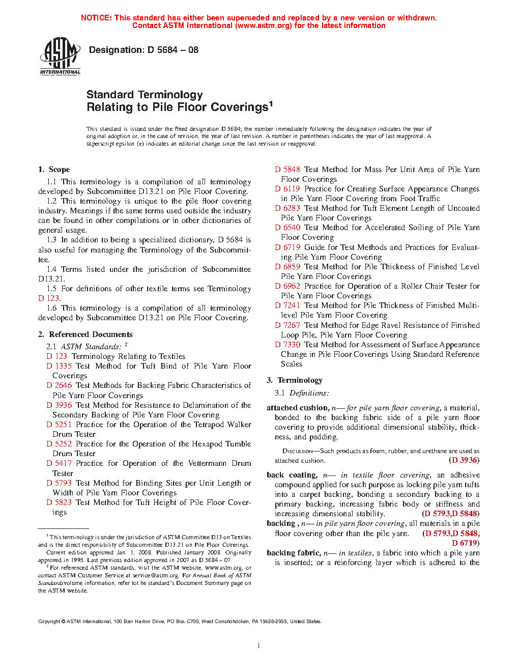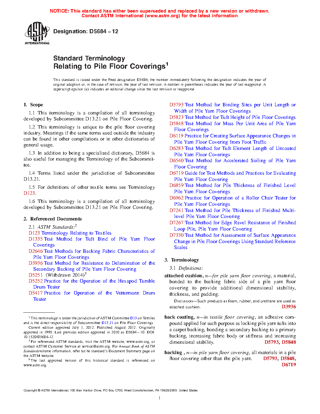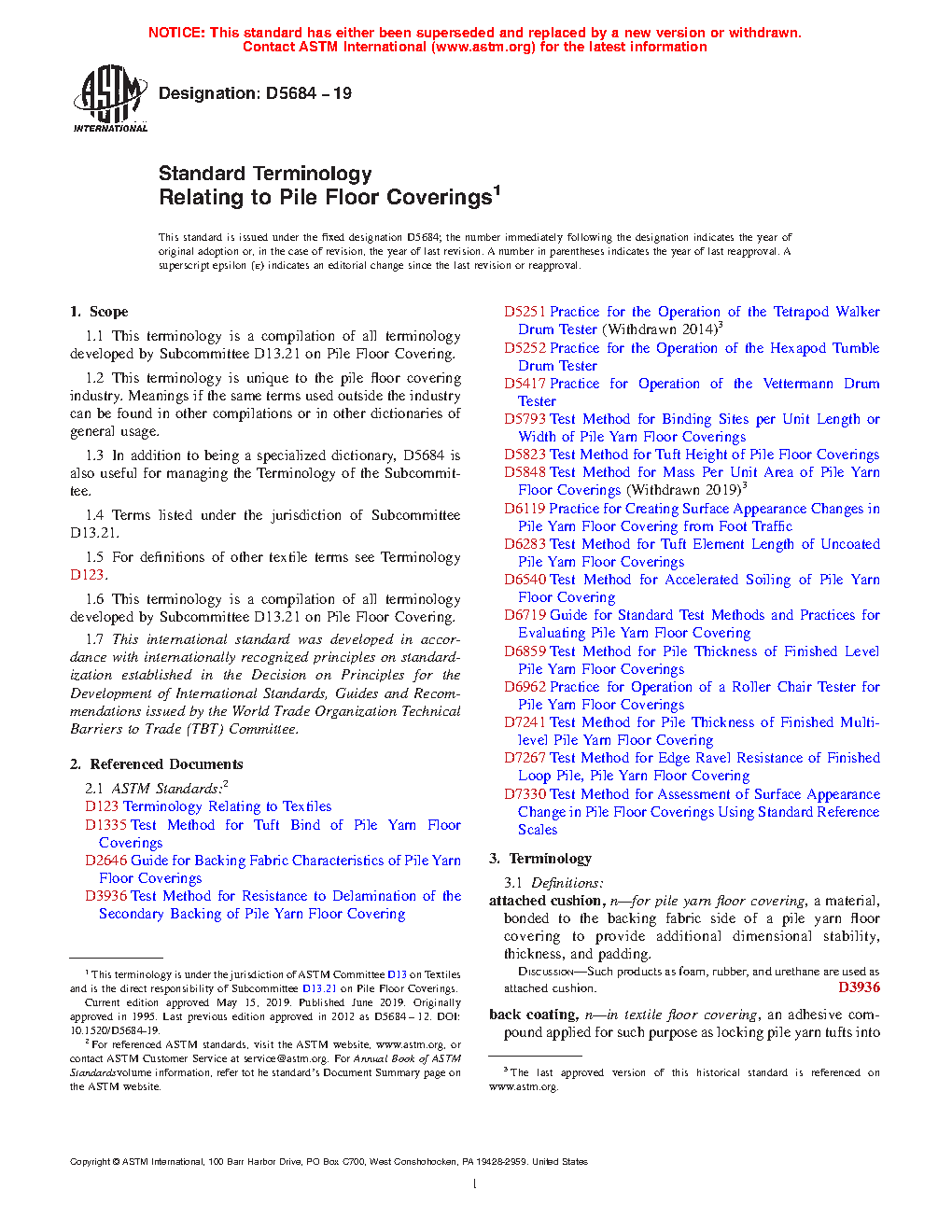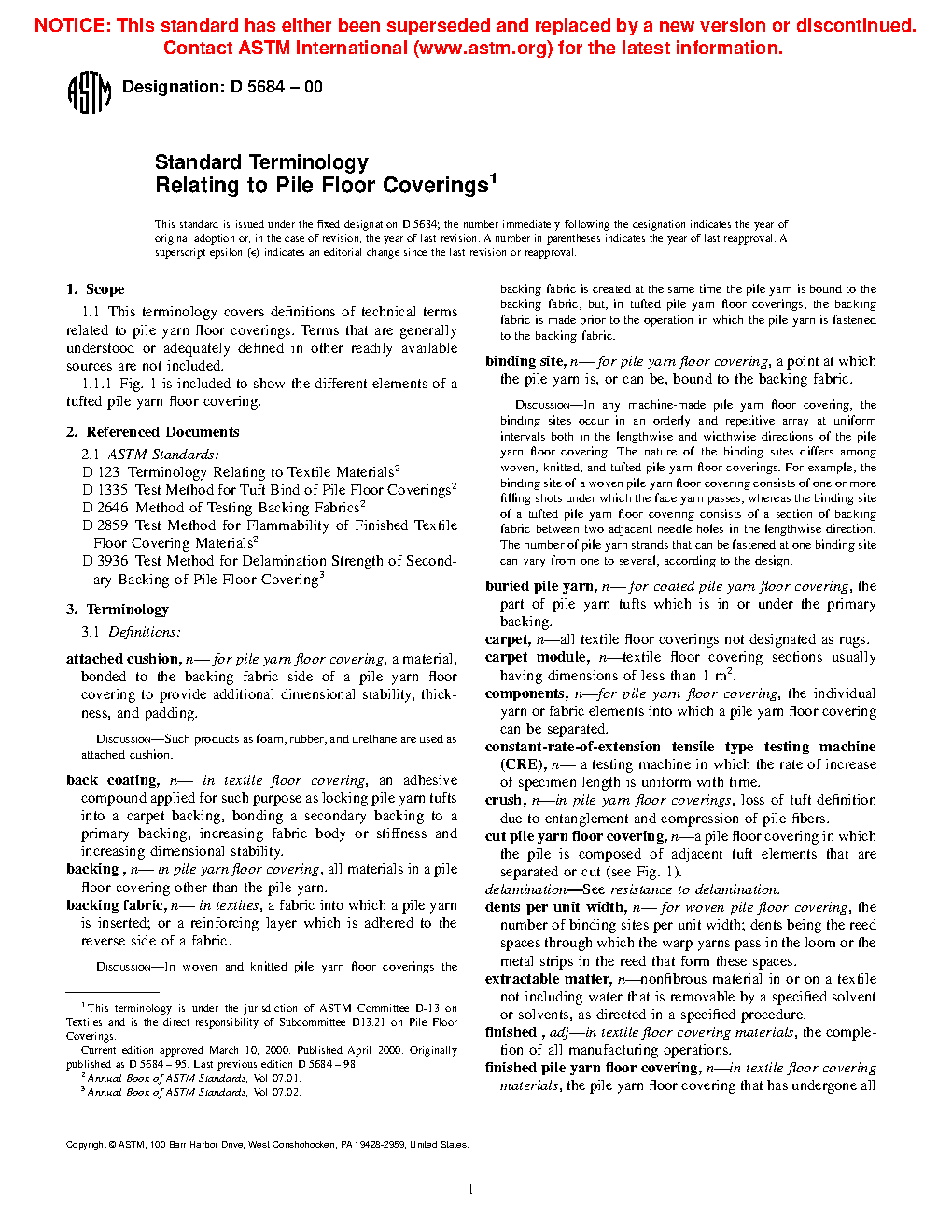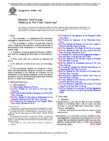 1.1 This terminology is a compilation of all terminology developed by Subcommittee D13.21 on Pile Floor Coverings.