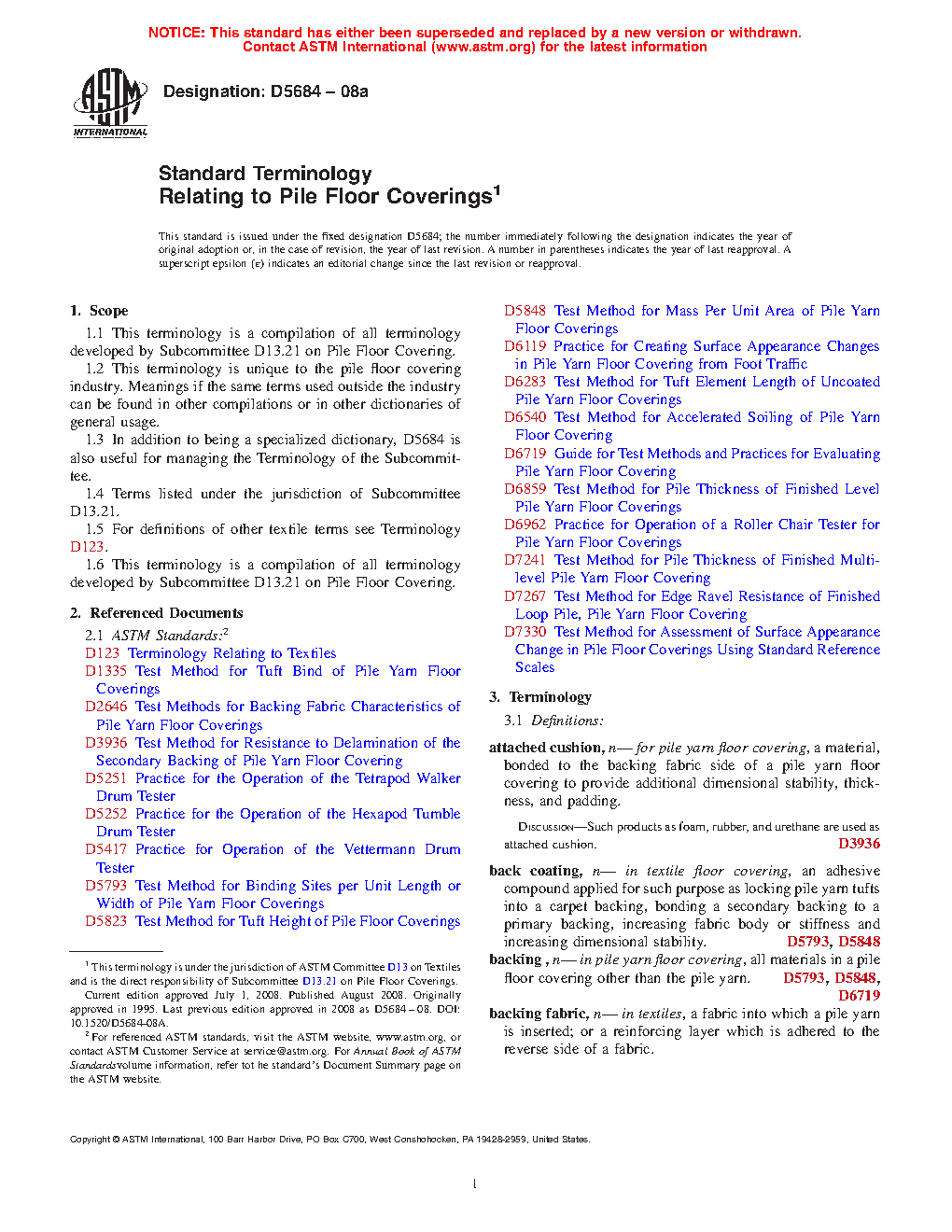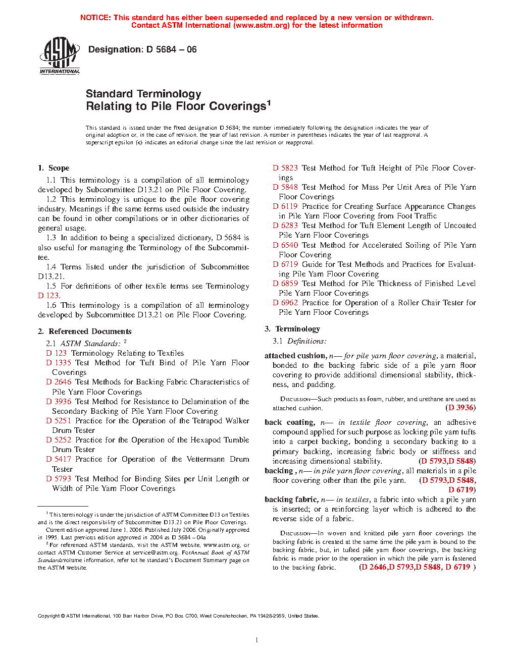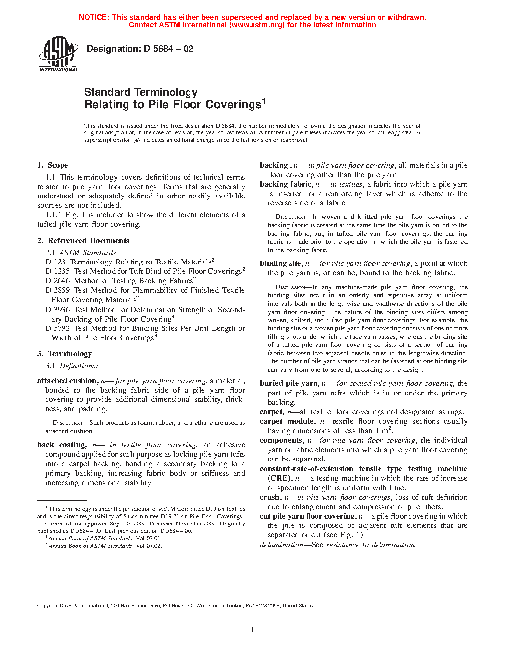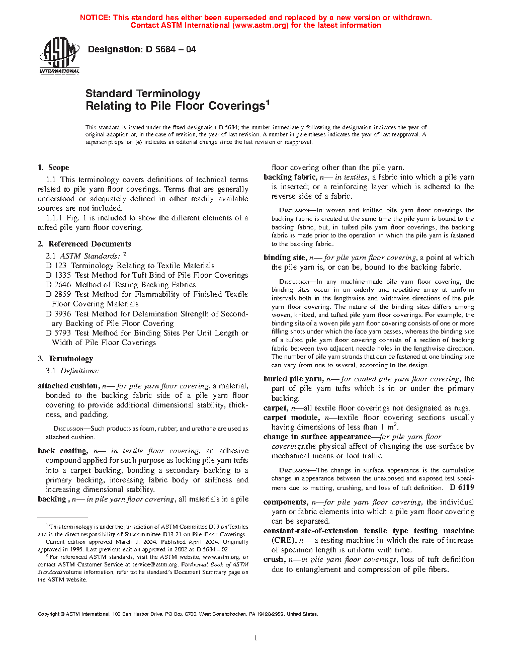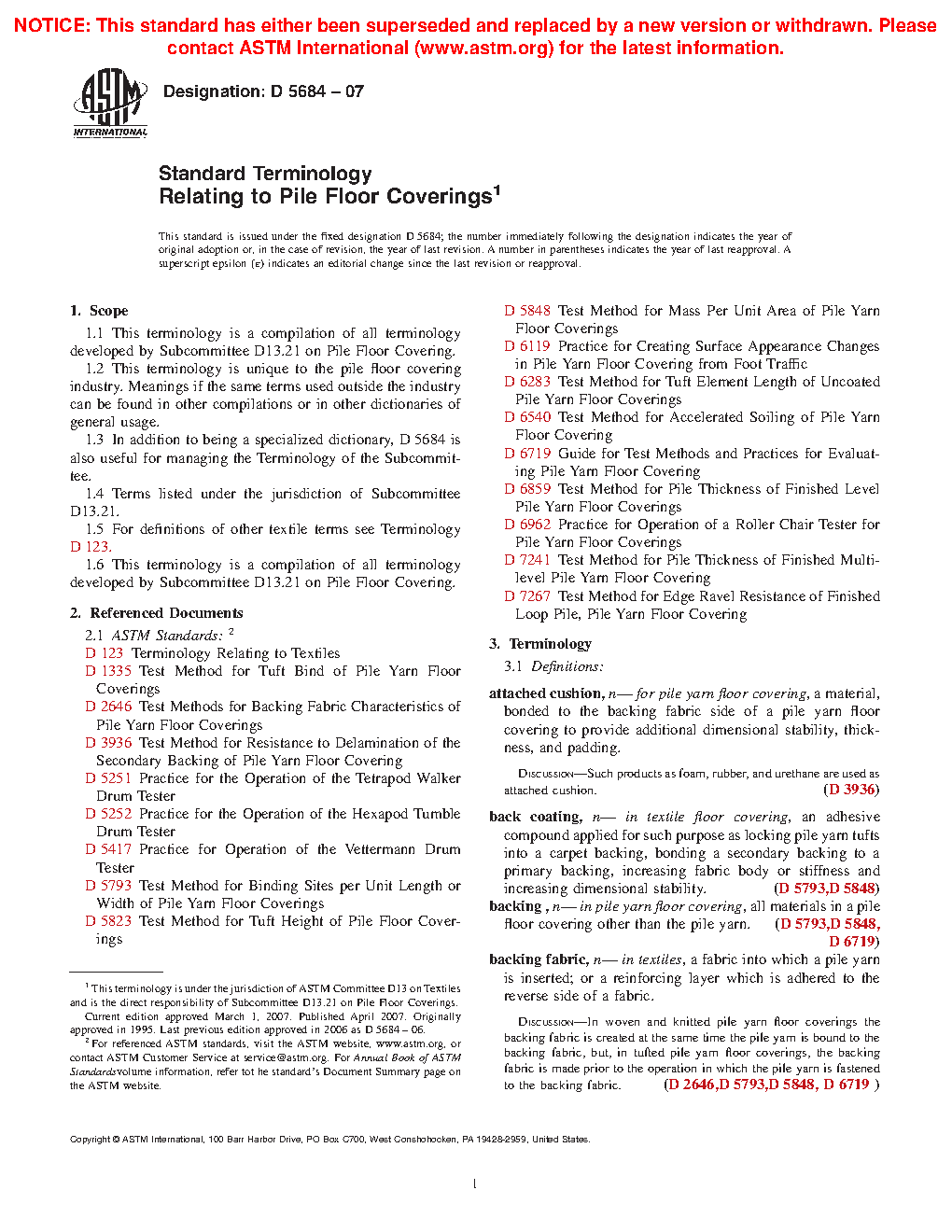 1.1 This terminology is a compilation of all terminology developed by Subcommittee D13.21 on Pile Floor Coverings.
