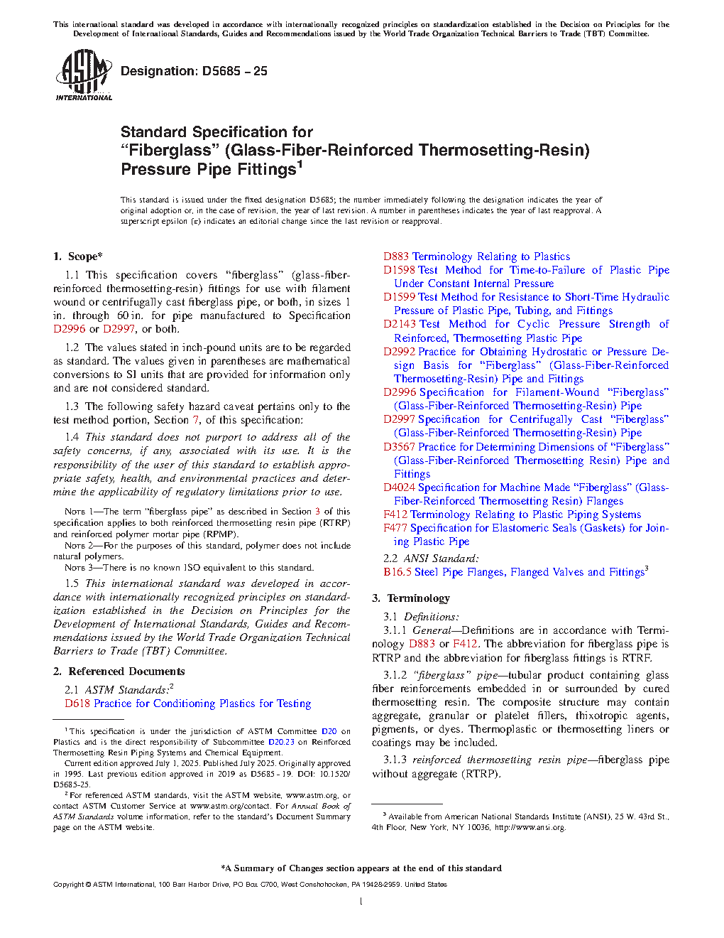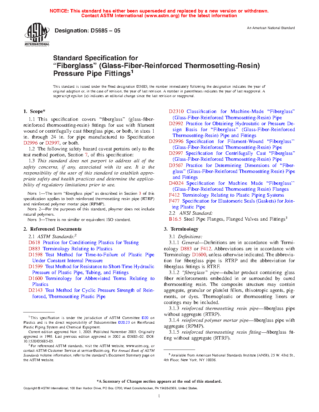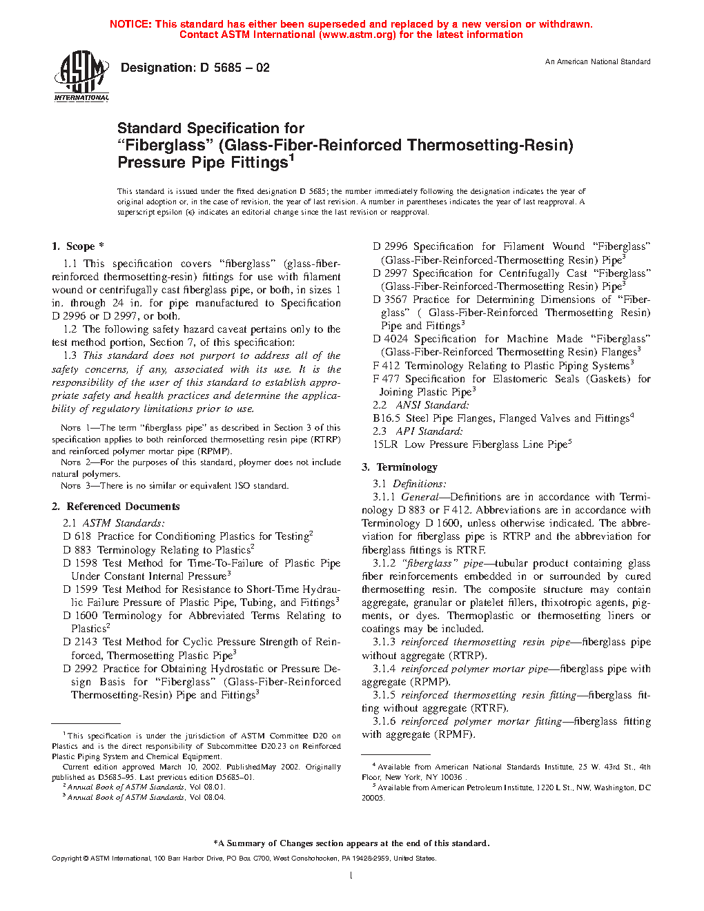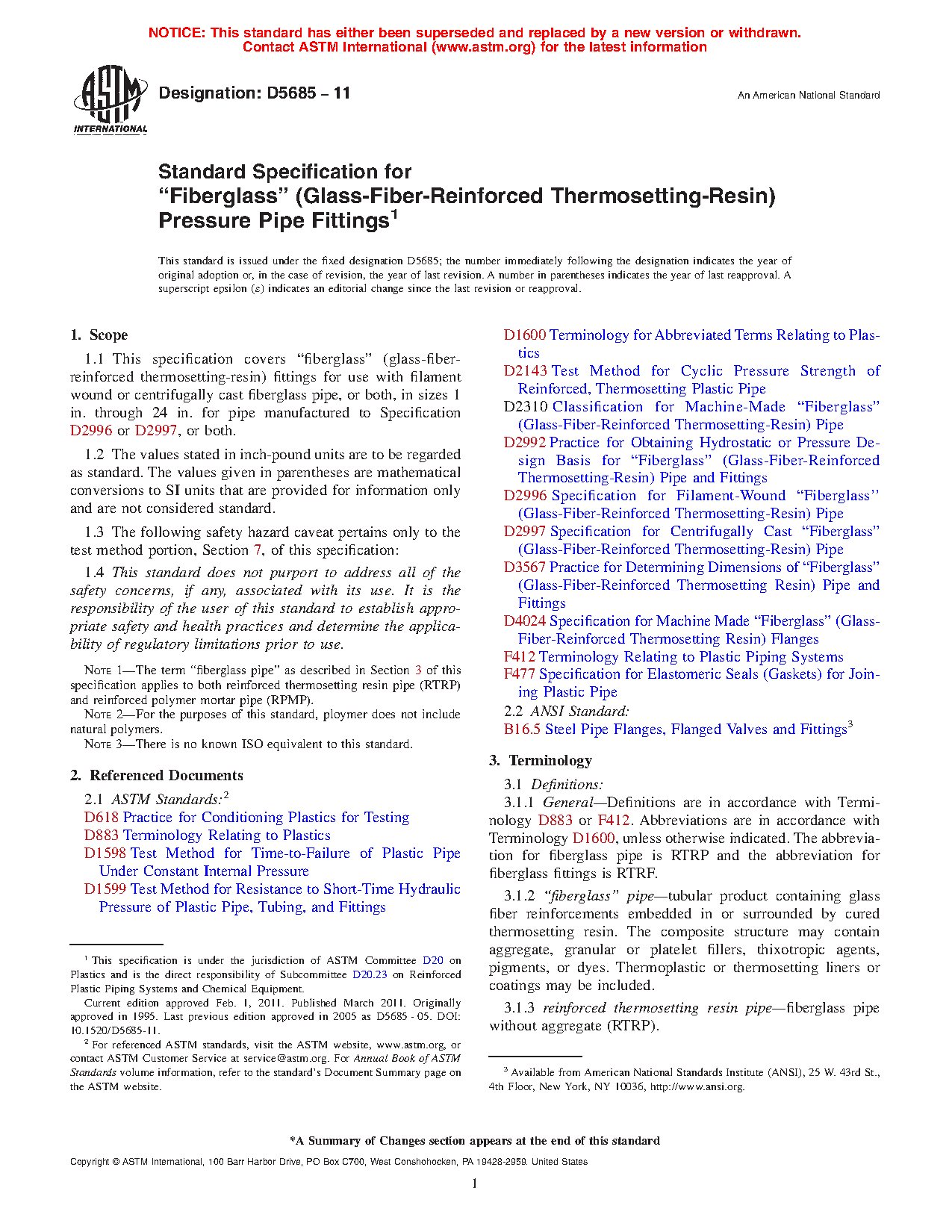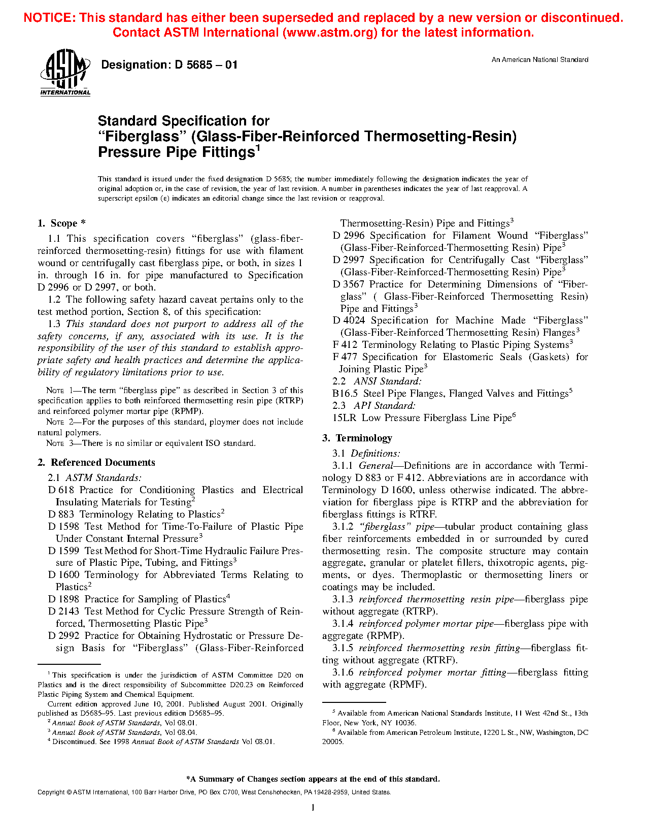 Note 1: The term “fiberglass pipe” as described in Section 3 of this specification applies to both reinforced thermosetting resin pipe (RTRP) and reinforced polymer mortar pipe (RPMP).