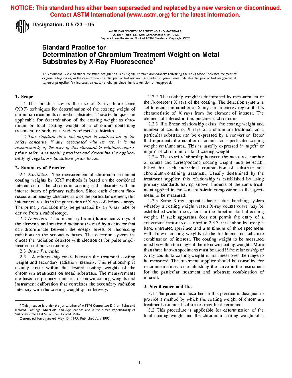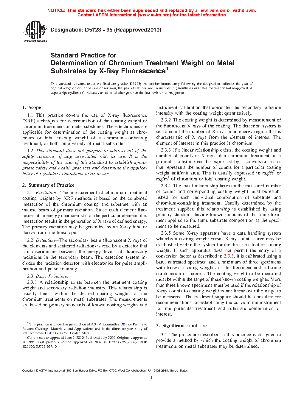 3.1 The procedure described in this practice is designed to provide a method by which the coating weight of chromium treatments on metal substrates may be determined.