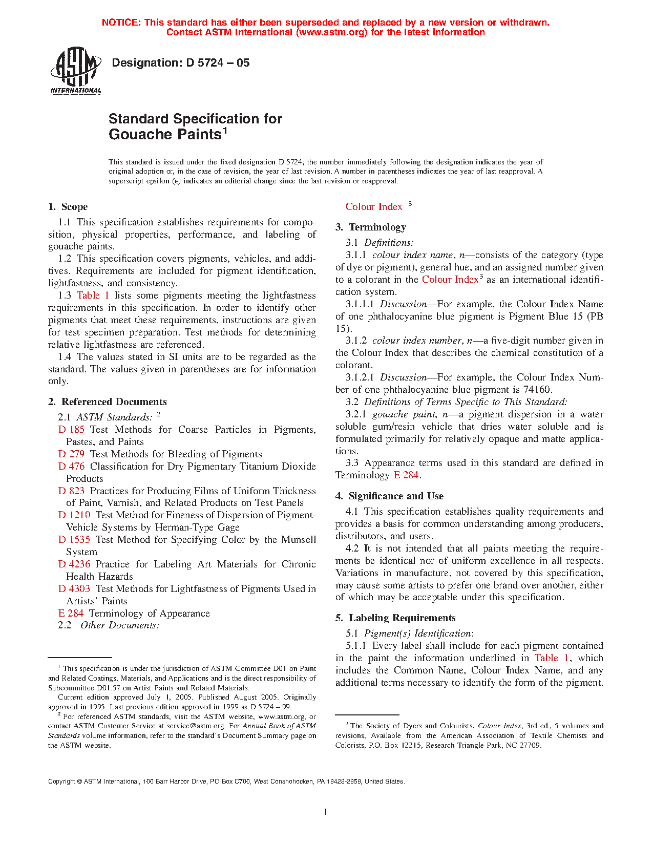 1.3 Table 1 lists some pigments meeting the lightfastness requirements in this specification. In order to identify other pigments that meet these requirements, instructions are given for test specimen preparation. Test methods for determining relative lightfastness are referenced.