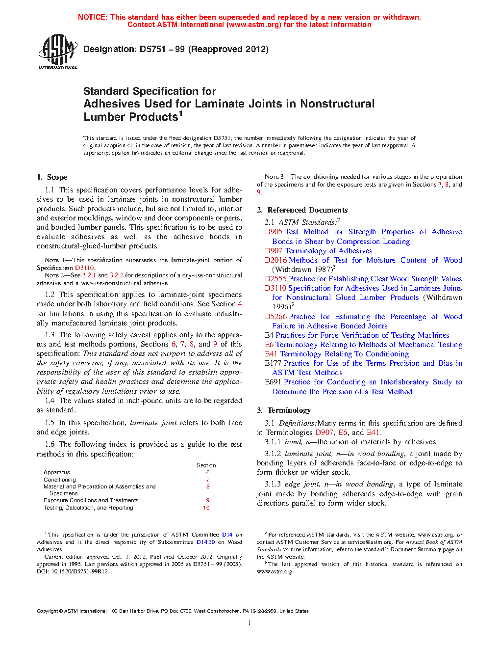 Note 1: This specification supersedes the laminate-joint portion of Specification D3110.