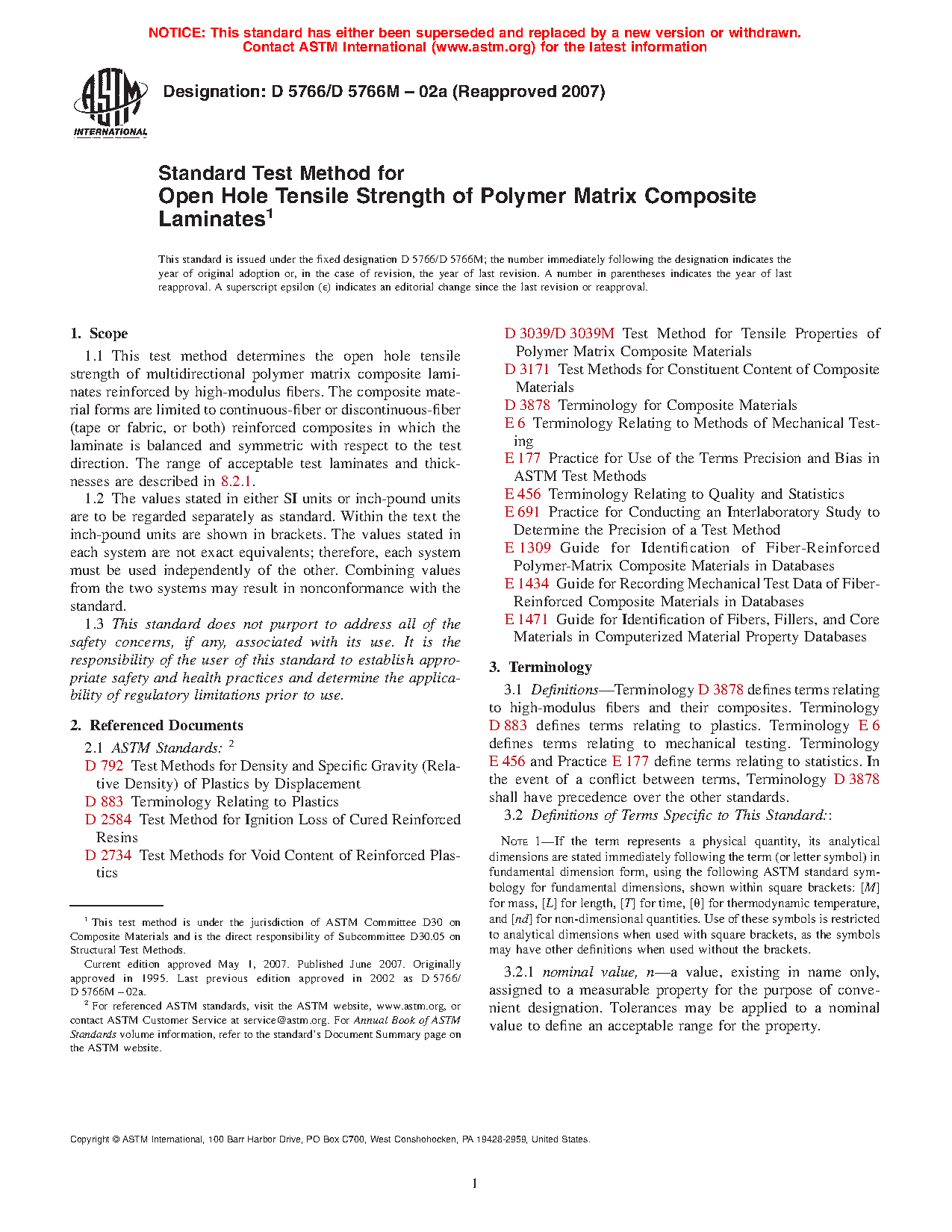 ASTM D5766/D5766M-07