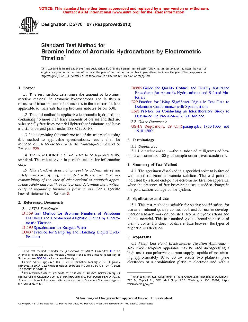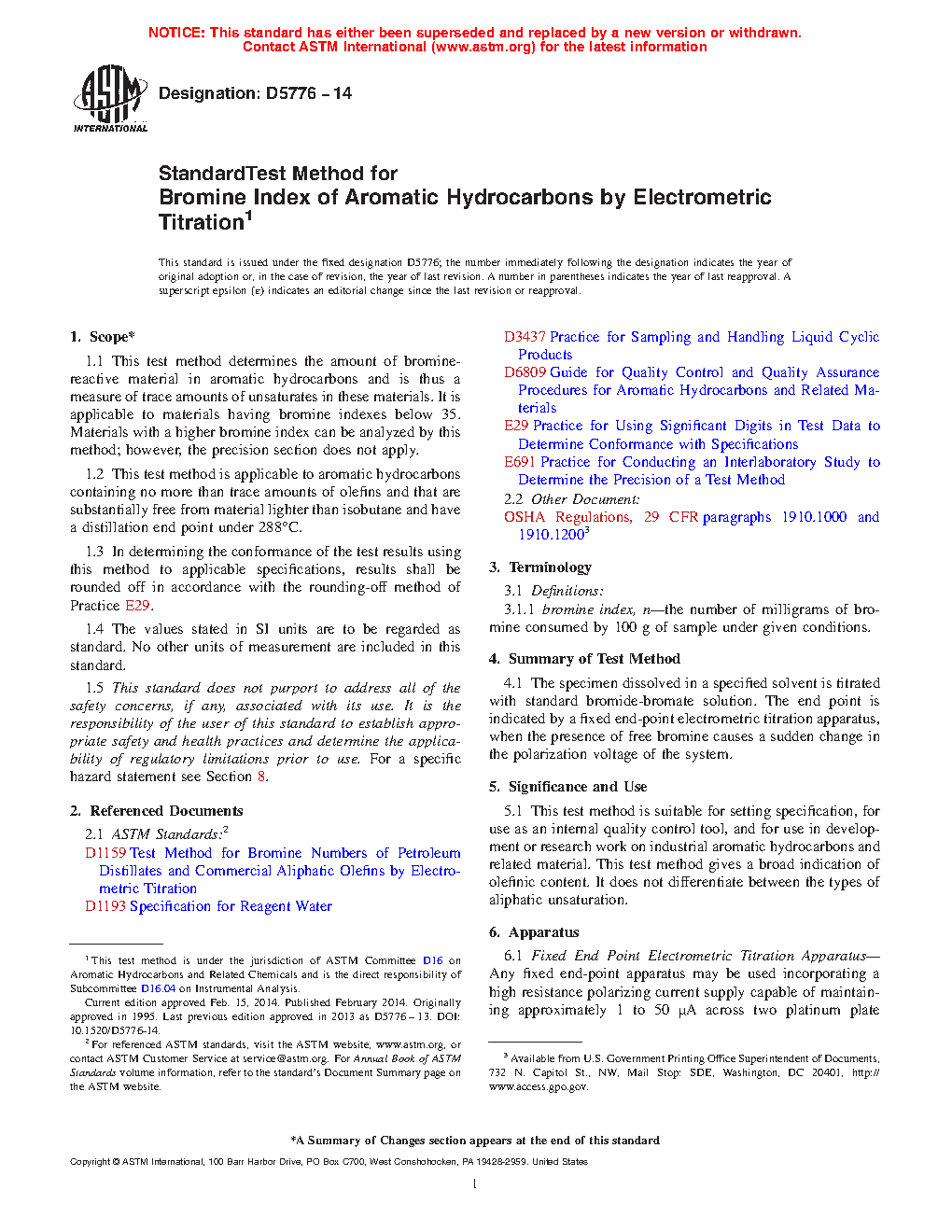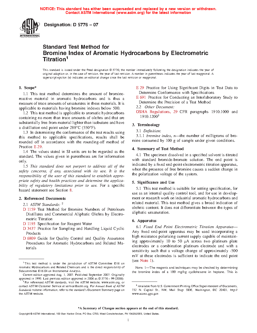 1.1 This test method determines the amount of bromine-reactive material in aromatic hydrocarbons and is thus a measure of trace amounts of unsaturates in these materials. It is applicable to materials having bromine indexes below 35. Materials with a higher bromine index can be analyzed by this method; however, the precision section does not apply.