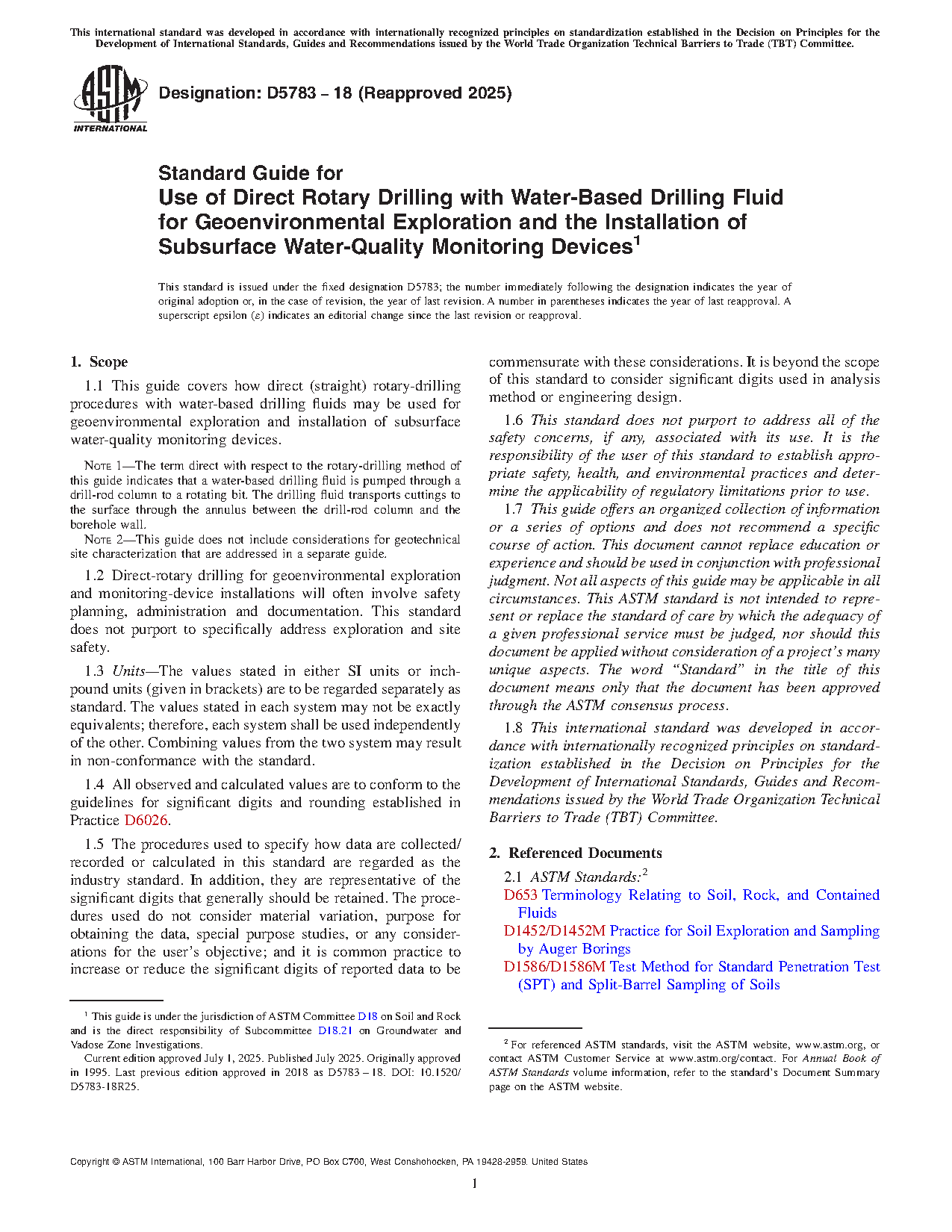 1.2 Direct-rotary drilling for geoenvironmental exploration and monitoring-device installations will often involve safety planning, administration and documentation. This standard does not purport to specifically address exploration and site safety.