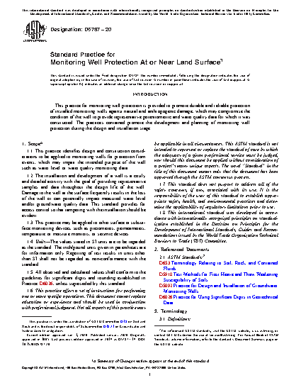 1.2 The installation and development of a well is a costly and detailed activity with the goal of providing representative samples and data throughout the design life of the well. Damage to the well at the surface frequently results in the loss of the well or can potentially impact measured water level and/or groundwater quality data. This standard provides for access control so that tampering with the installation should be evident.