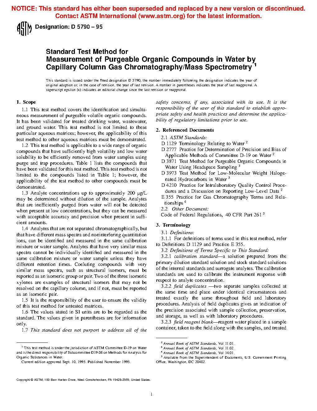 1.2 This test method is applicable to a wide range of organic compounds that have sufficiently high volatility and low water solubility to be efficiently removed from water samples using purge and trap procedures. Table 1 lists the compounds that have been validated for this test method. This test method is not limited to the compounds listed in Table 1; however, the applicability of the test method to other compounds must be demonstrated.