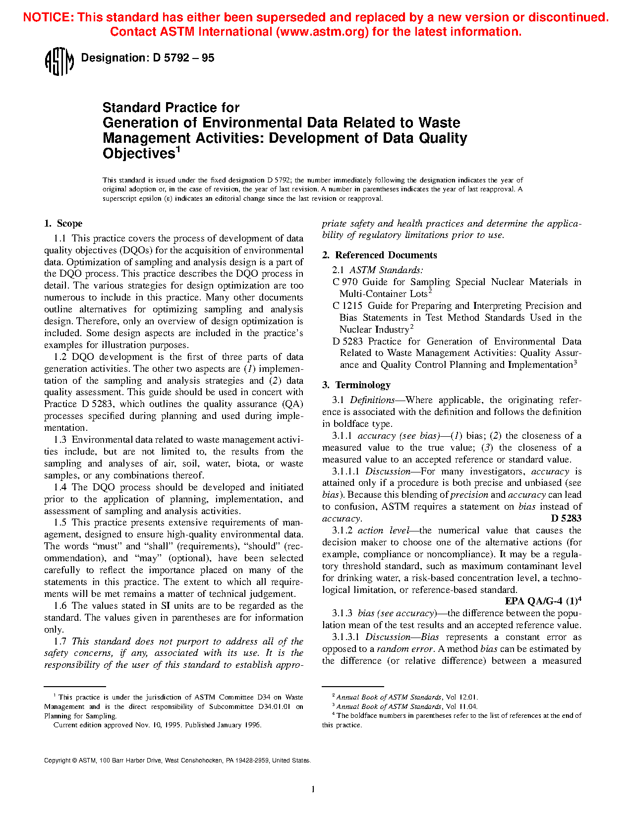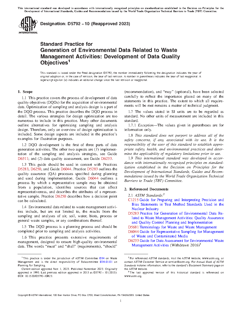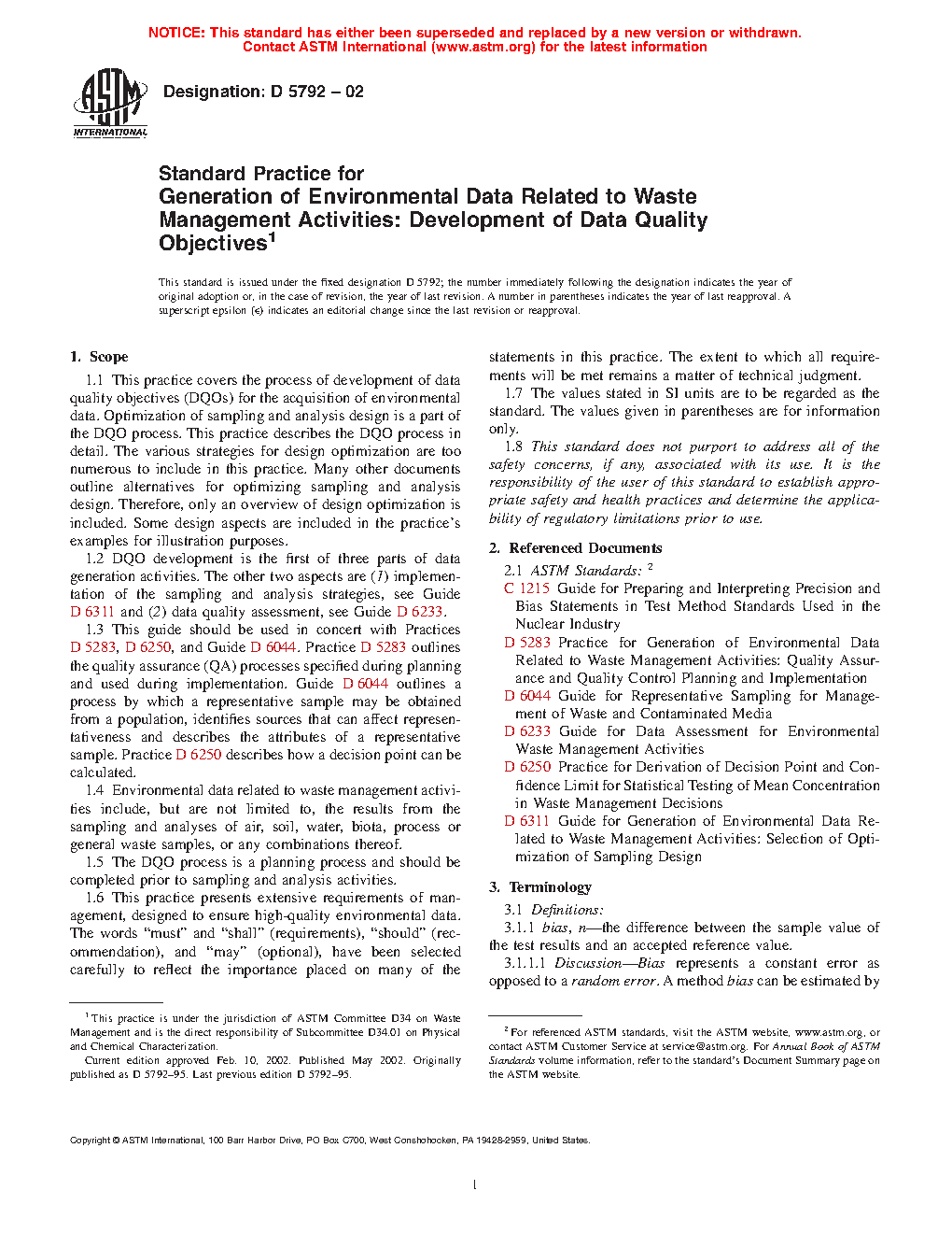 1.3 This guide should be used in concert with Practices D 5283, D 6250, and Guide D 6044. Practice D 5283 outlines the quality assurance (QA) processes specified during planning and used during implementation. Guide D 6044 outlines a process by which a representative sample may be obtained from a population, identifies sources that can affect representativeness and describes the attributes of a representative sample. Practice D 6250 describes how a decision point can be calculated.